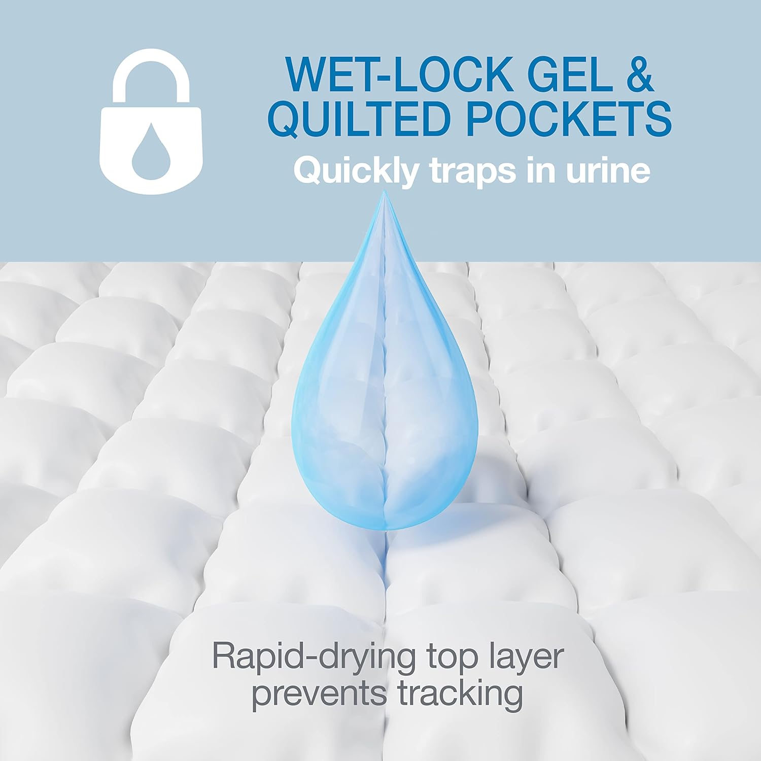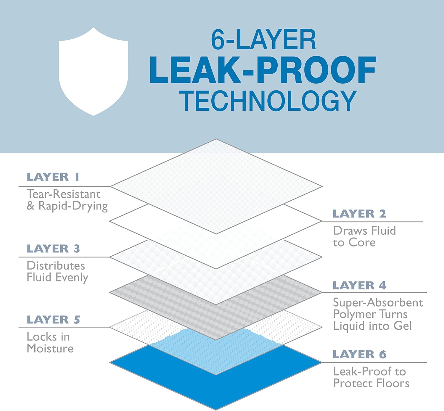 Four Paws Super Absorbent Wee Wee Pads feature double the protection of original Wee Wee Pads, for all-day accident prevention. Designed for adult dogs, these pads lock in wetness and neutralize odors to keep your home protected. Double protection locks in wetness and neutralizes odors. Provides all-day protection. Helps prevent indoor accidents. Designed for adult dogs. 5 ply leak-proof design. Pad dimensions: 24"L x 24" W. Super Absorbent Wee Wee Pads are designed with your home in mind. A quilted top layer locks in wetness, while a leak-proof backing protects floors and carpets. 2 moisture-locking layers ensure maximum absorption power.