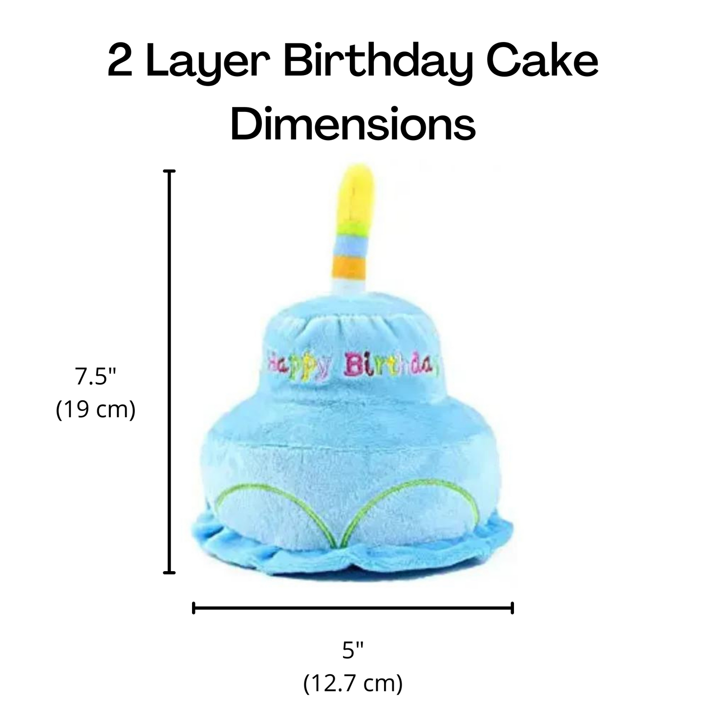 Midlee Birthday Cake Dog Toy- Blue 2 Layer Plush Squeaker Pet Boy Gift