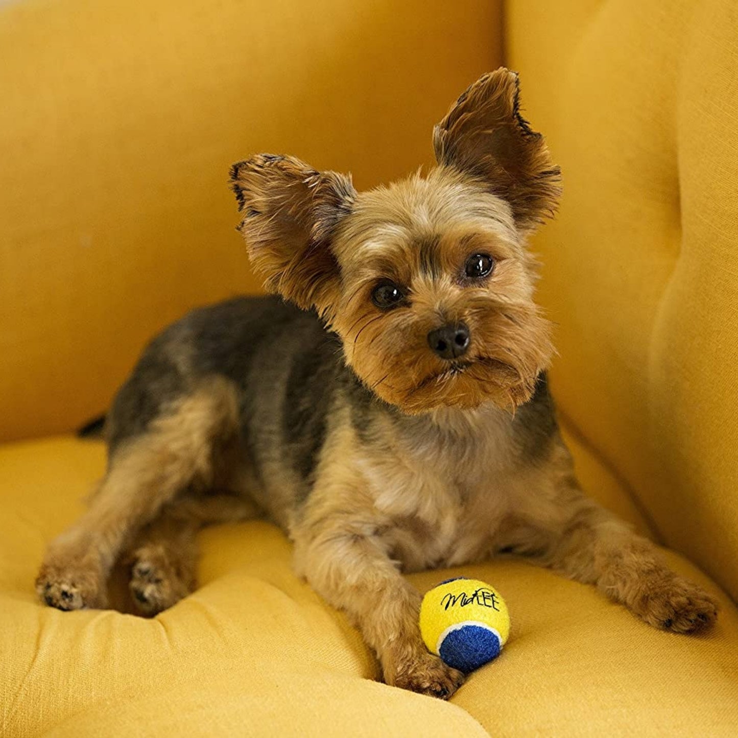 An all-time favorite that's a sure winner with any dog. These tennis balls deliver bounce-and-roll action and stand up to overtime play like little champs! These mini tennis balls are perfect for your small-breed dog! The little size fits perfectly in your dog's mouth! They are great for a game of fetch and will fit into the most common automatic ball launchers. These balls do NOT have squeakers inside. The soft fabric won't hurt your dog's teeth.