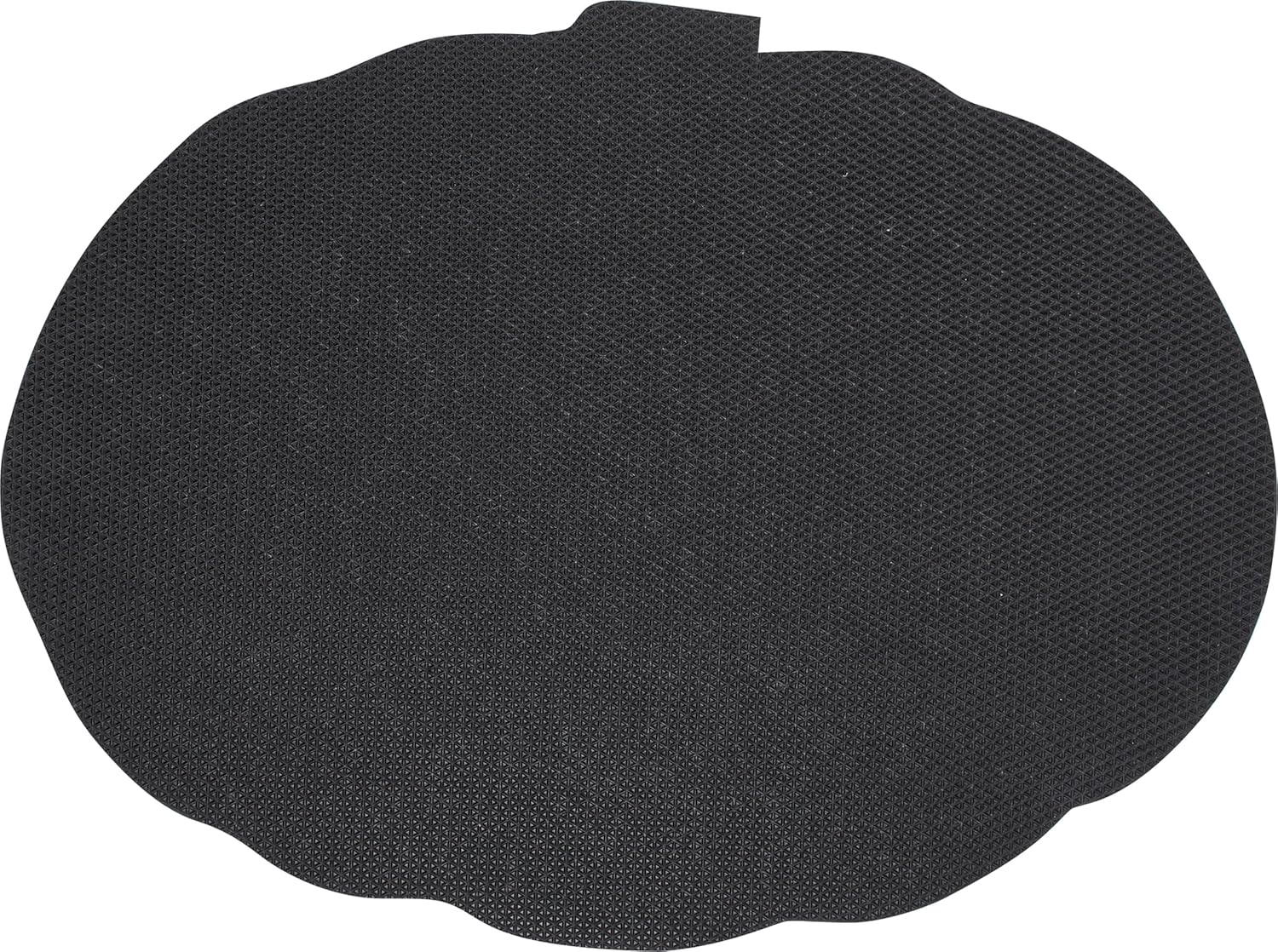 A polyester rug from our cottagecore-inspired Halloween Collection displaying a cutout design of a jack-o'-lantern with muted Halloween colors. Features skid-resistant PVC backing and includes a tag displaying the full design. Our Jack O'Lantern rug is intended for indoor or sheltered outdoor use. Spot cleaning recommended.