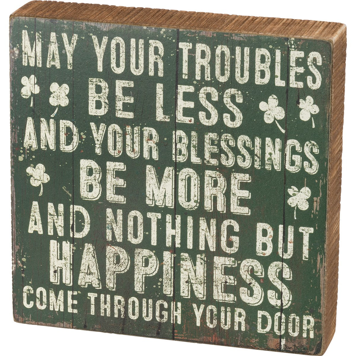 Primitives by Kathy Troubles Be Less Your Blessings Be More Box Sign