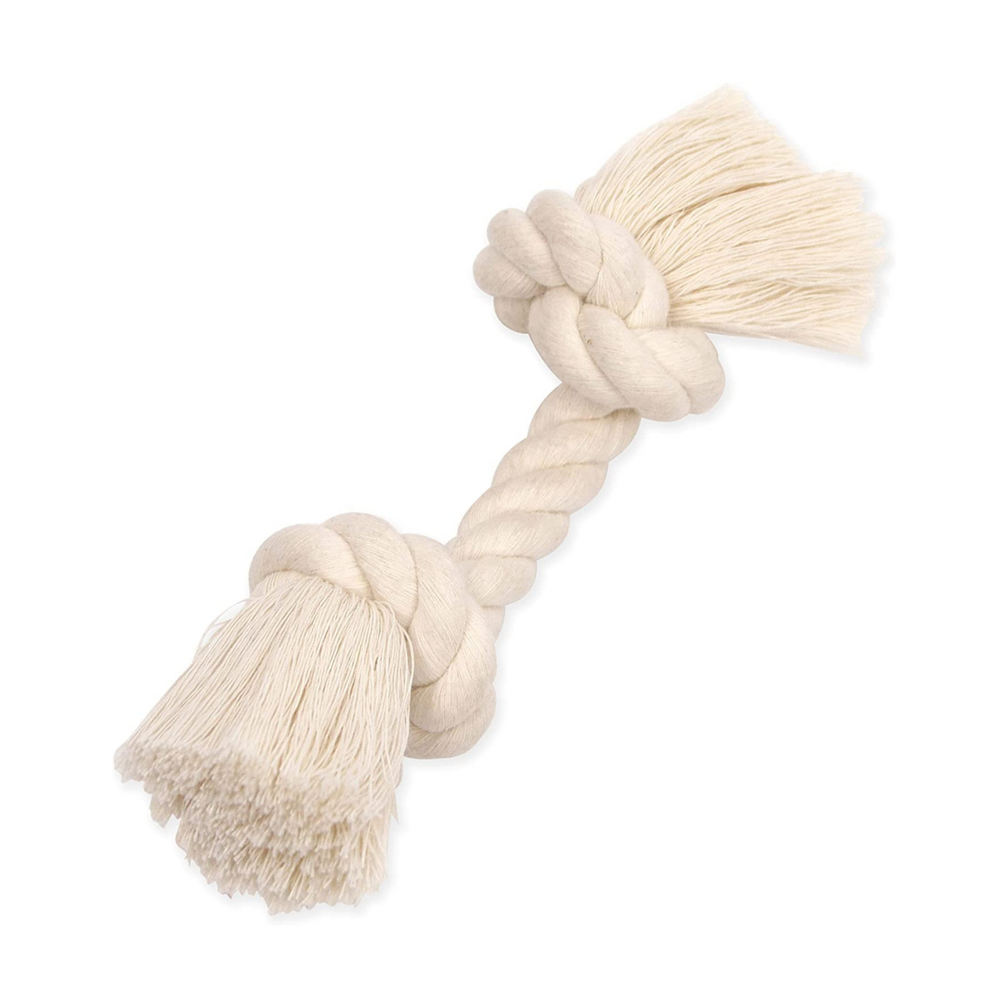 Mammoth Flossy Chews White Rope Bone is natural select 100% cotton. Premium quality knot tug is tightly woven for long-lasting performance.