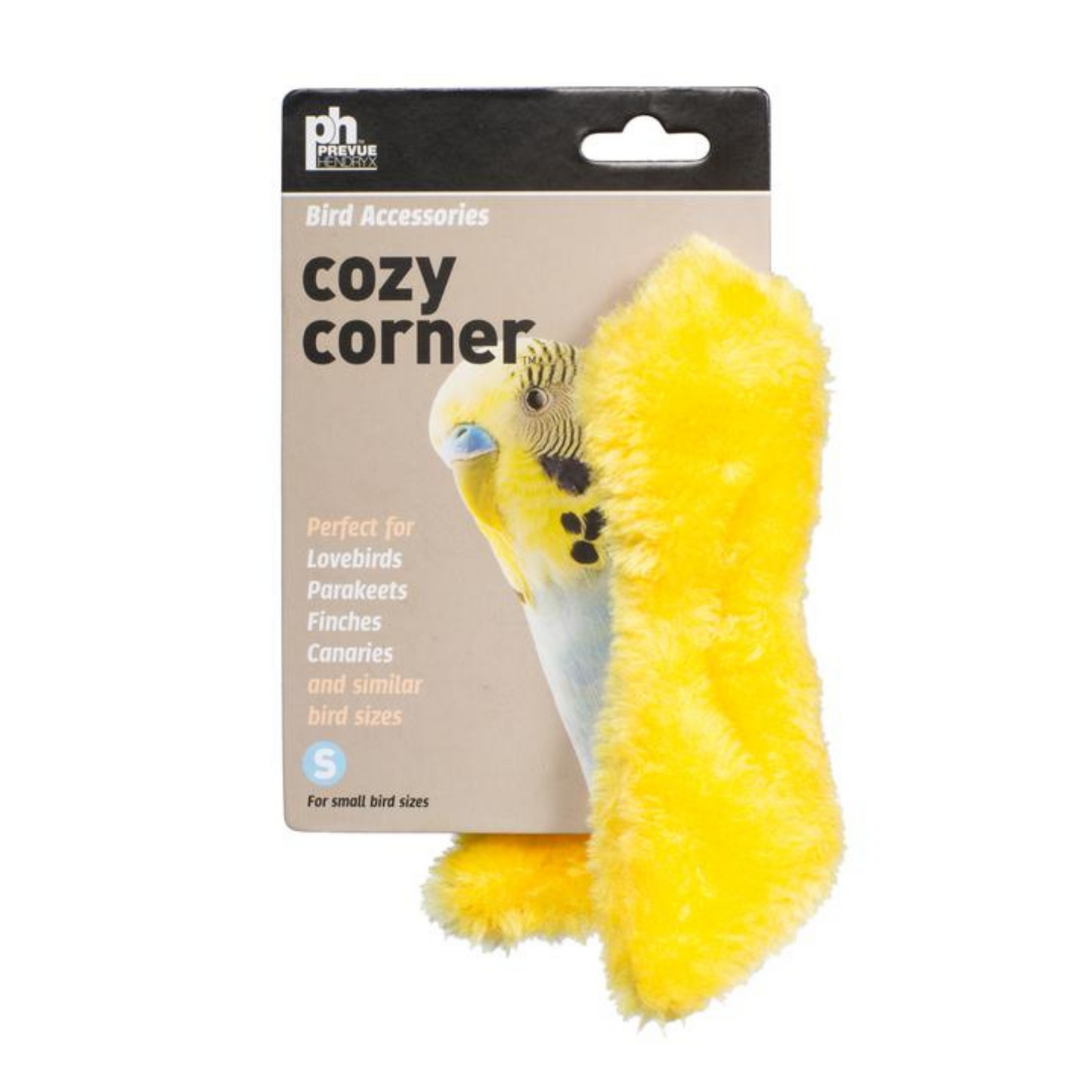 Prevue Cozy Corner fleece bird blankets help keep birds warm even in the colder months or drafty areas. Simply attach one to your birds cage in a corner near the perch, and your bird will naturally snuggle up to it whenever its feeling chilly. Helps keep birds warm in drafty areas and cool weather. Soft fleece with ties for easy cage attachment. Perfect for lovebirds, parakeets, canaries and similar sized birds. Machine washable. Sizes: Small: 5.5" Long, Medium: 8" Long, Large: 11.5" Long. Note: Cozy Corners ship in assorted colors. Please let us choose one for you!
