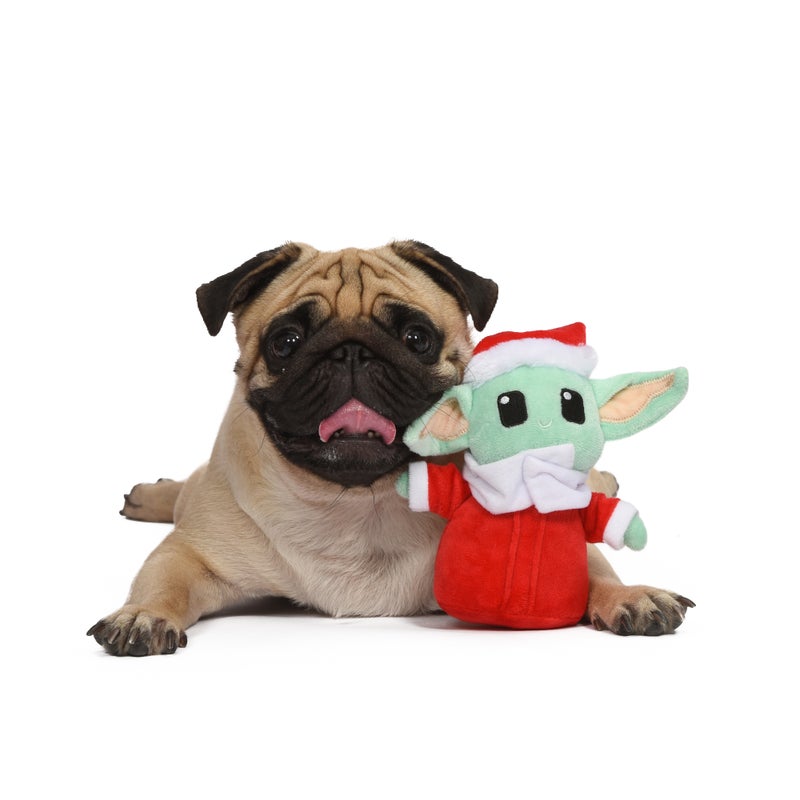 Watch Return of the Jedi with your pet and their very own Grogu Santa toy for dogs this Holiday season! This Star Wars toy is ready to play with your Star Wars dog. Baby Yoda stuffed animals for dogs are the perfect addition to any dog toy storage, be it a dog toy bin, dog toy box, or dog toy basket. This plush dog toy is made from soft fabric. It is a stuffed animal toy for dogs with a squeaker, making it a squeaky dog toy that will keep your pet entertained for hours on end. Star Wars plush toys like this one can be dog chew toys. Give your pet this Grogu plush dog toy for the Holidays or any time of year and see how delighted they are when they hear the squeaky dog toy sound this dog chew toy makes. A plush dog toy like this one is ideal for light to medium chewers, and may not be ideal if you are looking for plush dog toys for aggressive chewers. Measuring 6 inches, this is a small dog toy that could be a dog toy for small dogs.