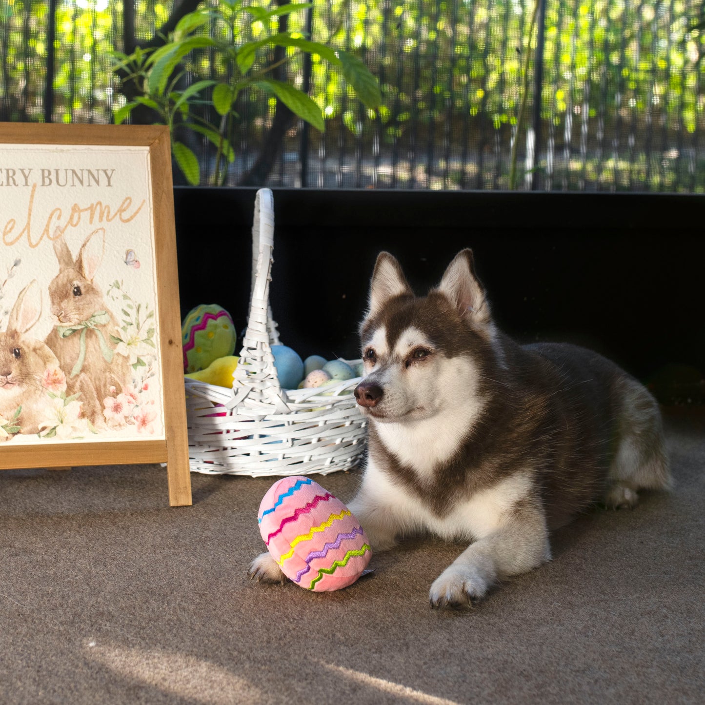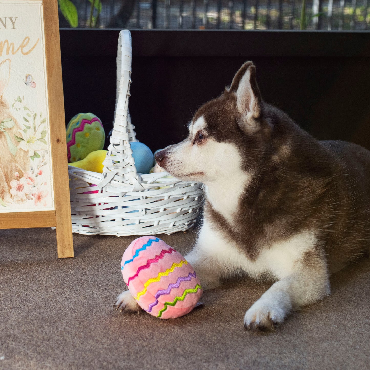 This plush Easter egg dog toy is perfect for your pet to play with on Easter. Soft, plush, and colorful, it features a squeaker and will keep your dog busy. Embroidered adorable Easter egg decorations add the perfect touch. This toy makes an excellent addition to your dog's Easter egg basket.