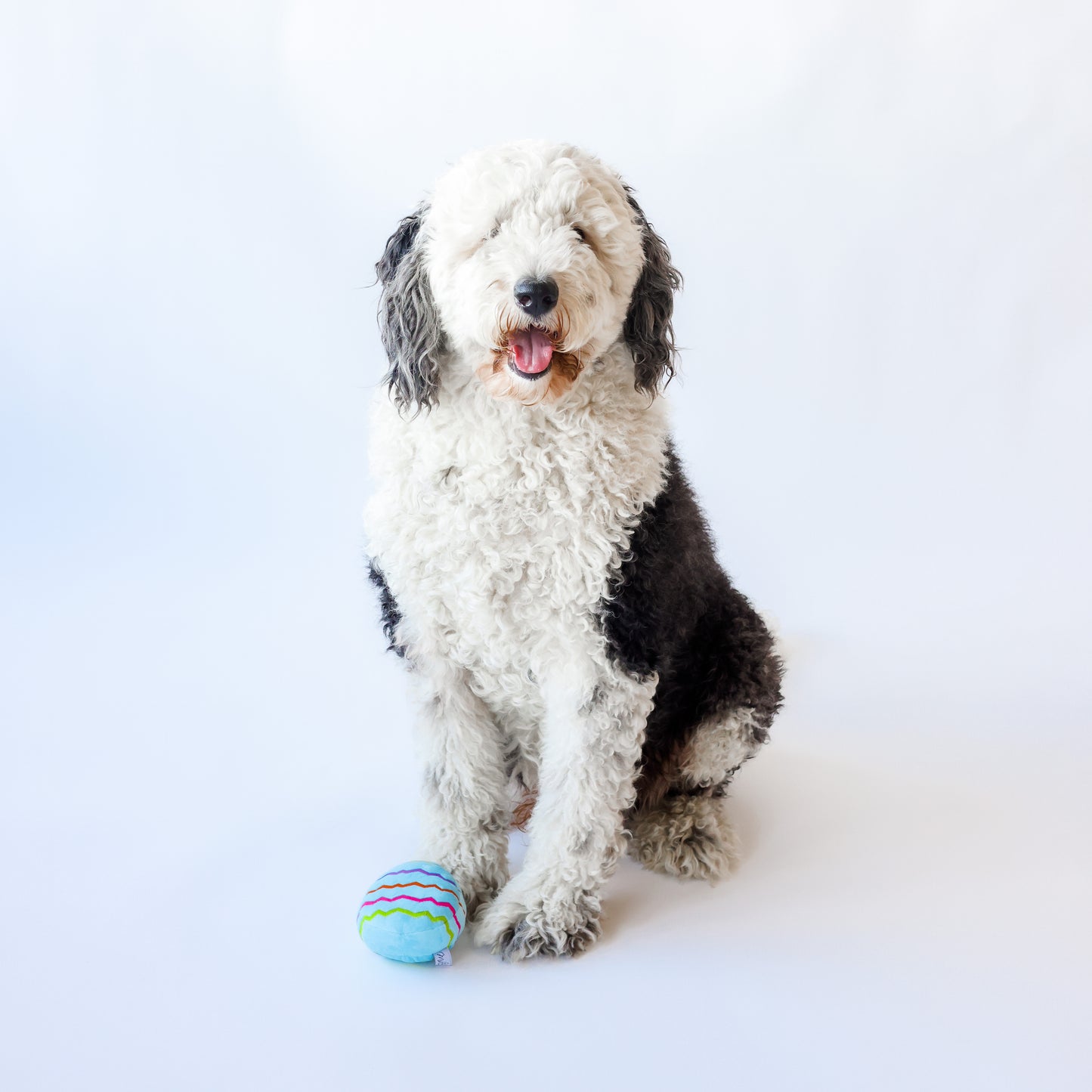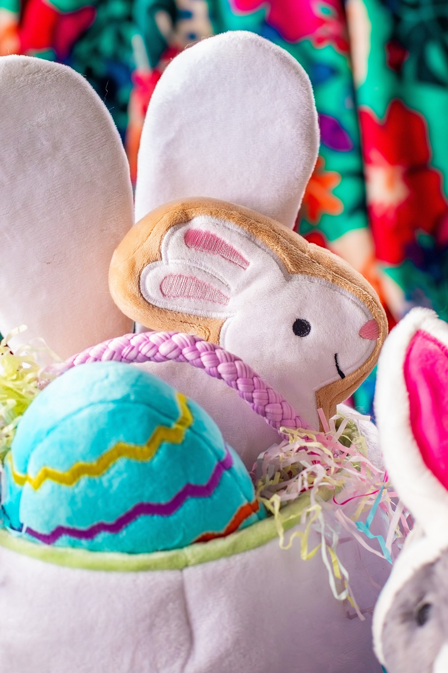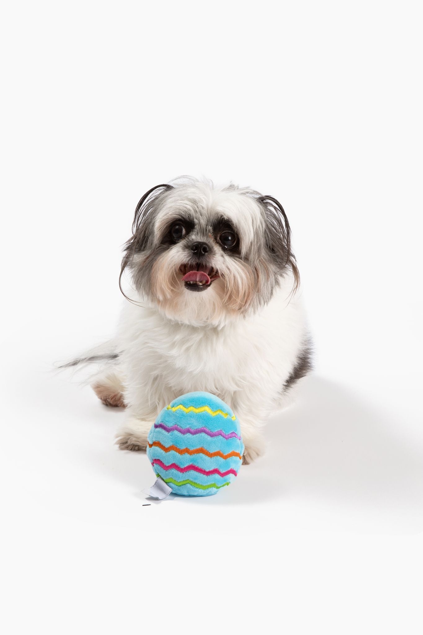 This plush Easter egg dog toy is perfect for your pet to play with on Easter. Soft, plush, and colorful, it features a squeaker and will keep your dog busy. Embroidered adorable Easter egg decorations add the perfect touch. This toy makes an excellent addition to your dog's Easter egg basket.