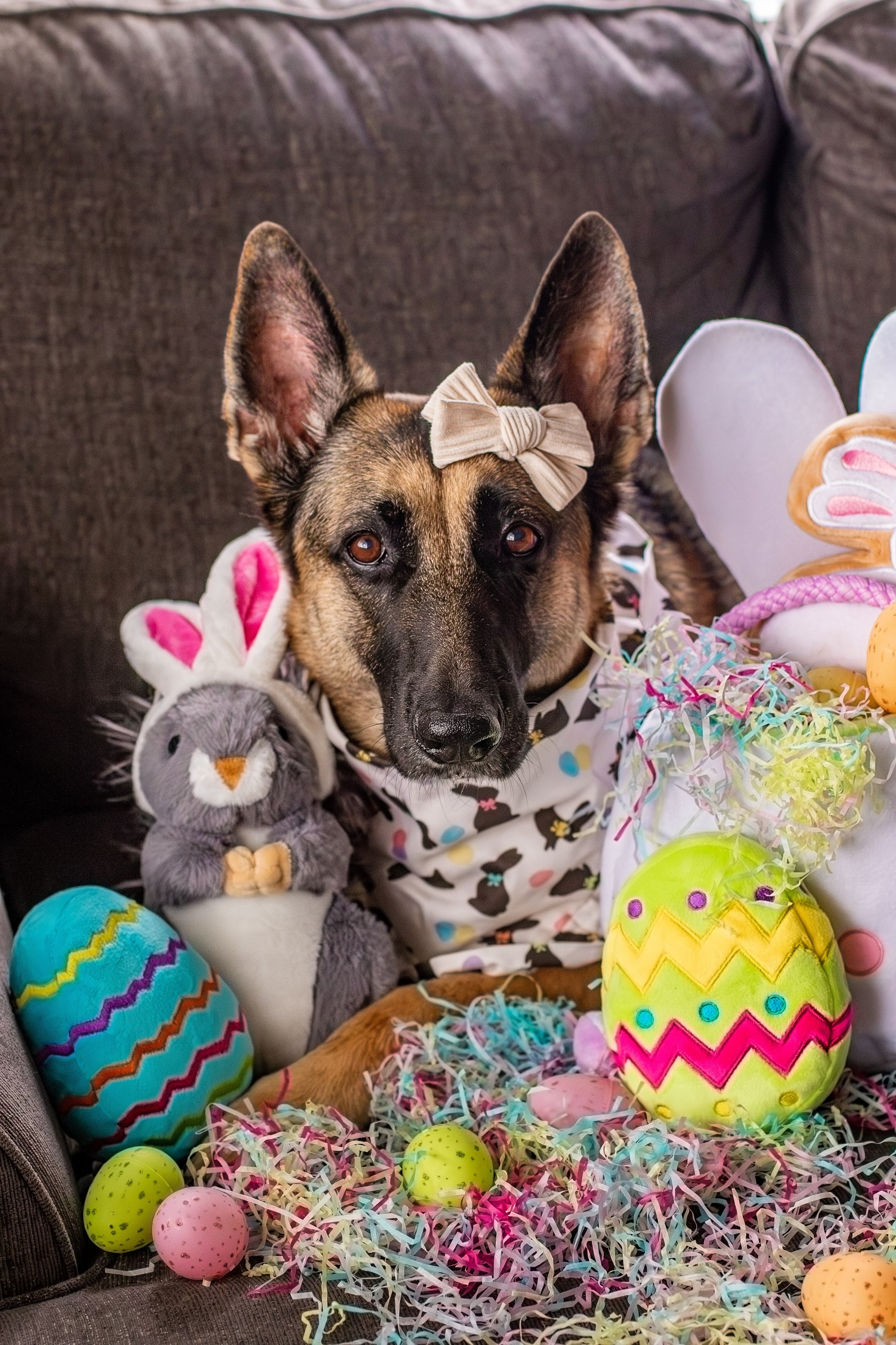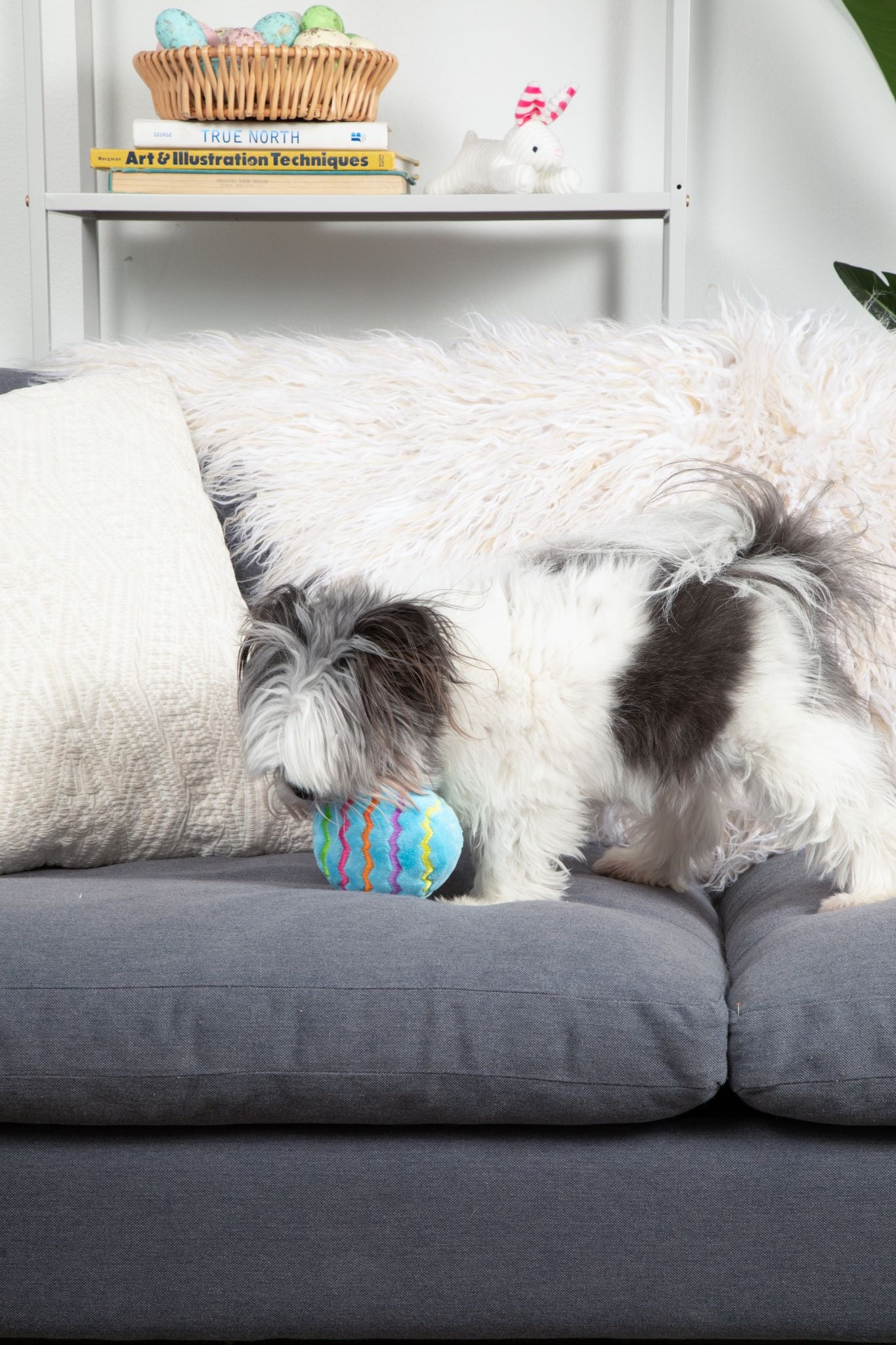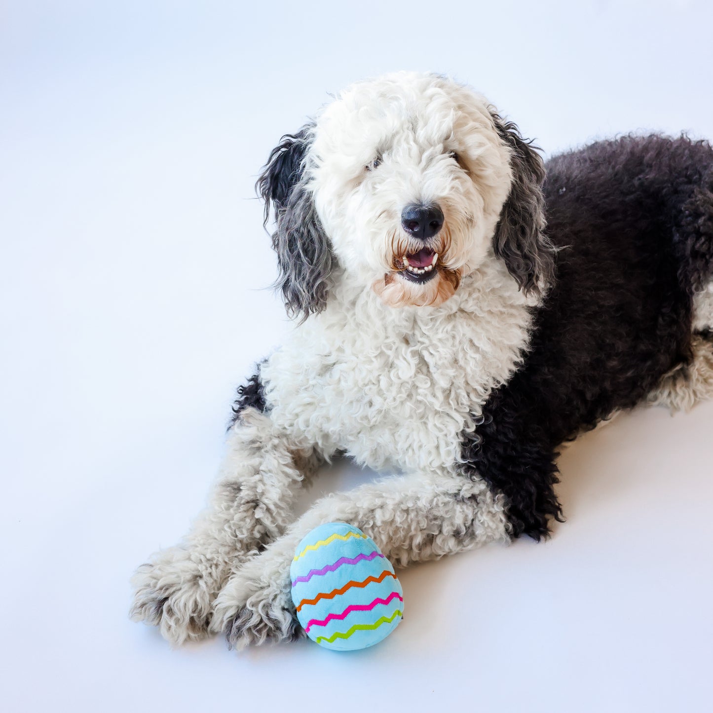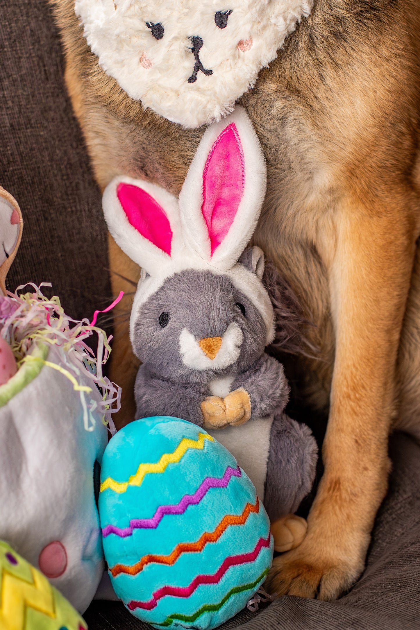This plush Easter egg dog toy is perfect for your pet to play with on Easter. Soft, plush, and colorful, it features a squeaker and will keep your dog busy. Embroidered adorable Easter egg decorations add the perfect touch. This toy makes an excellent addition to your dog's Easter egg basket.