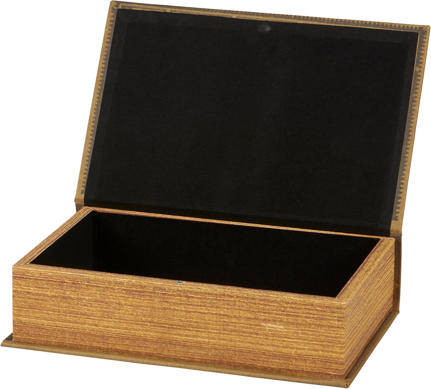 A decorative box from our Christmas Collection displaying the appearance of a book inspired by vintage holiday décor. Book box features a textured canvas wrap displaying the exterior of an aged book with a vintage Santa design on the cover and sentiment on the spine that reads "Cards Of Christmas Past." The front cover opens to reveal a velvet-lined space for storing items and a magnet closure for secure storage when standing up. Our Christmas Past book box can be used upright as a book or displayed lying down with the cover open and decorative accents inside. Accessories pictured not included. A rustic home accent perfect for storing keepsakes or for seasonal décor displays.