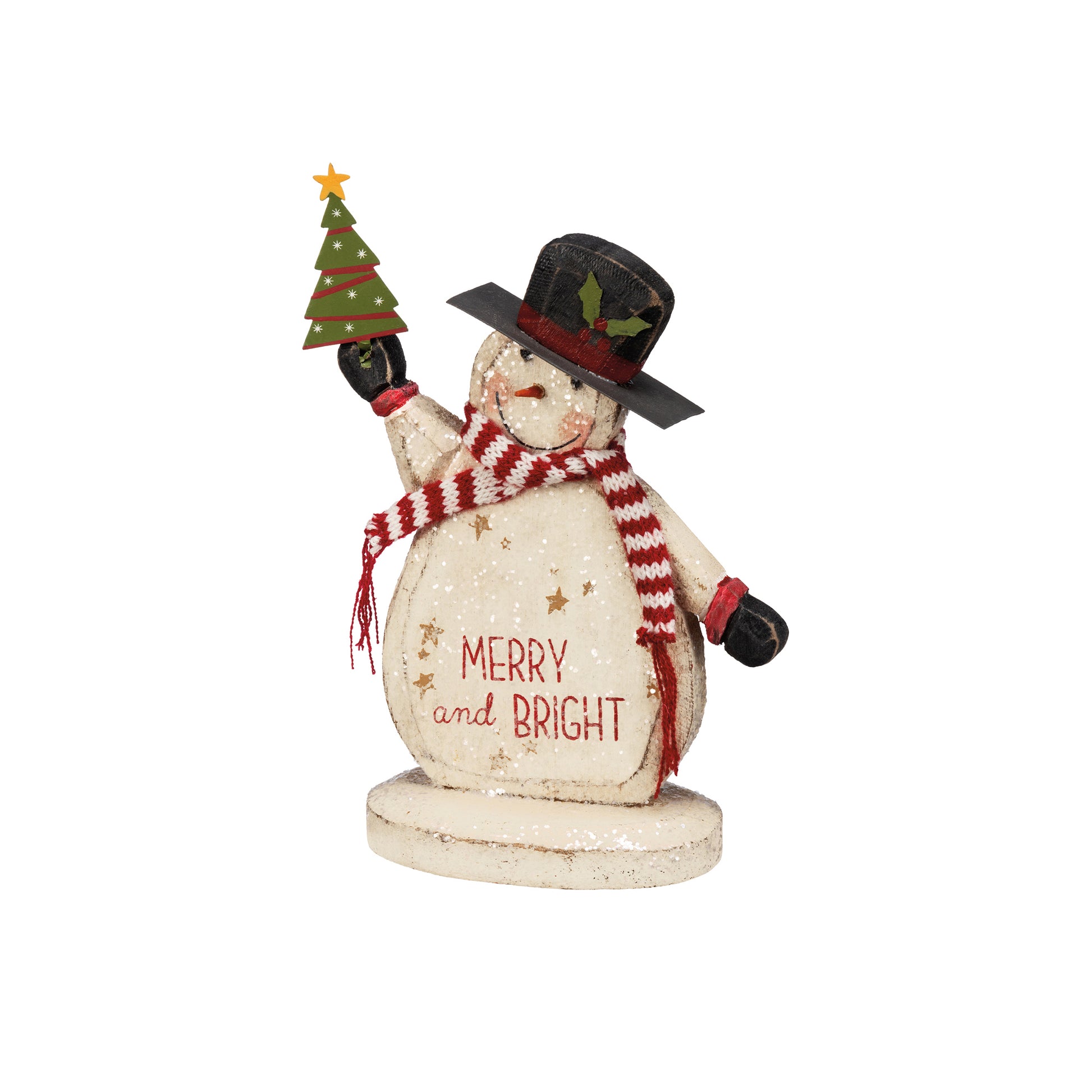 Add a touch of rustic holiday charm to your home with the Primitives by Kathy Merry And Bright Chunky Sitter. This wooden decoration features a cheerful "Merry And Bright" sentiment alongside a whimsical snowman holding a Christmas tree. Perfect for enhancing your festive décor, this piece stands out with its dimensional accents and sturdy construction.