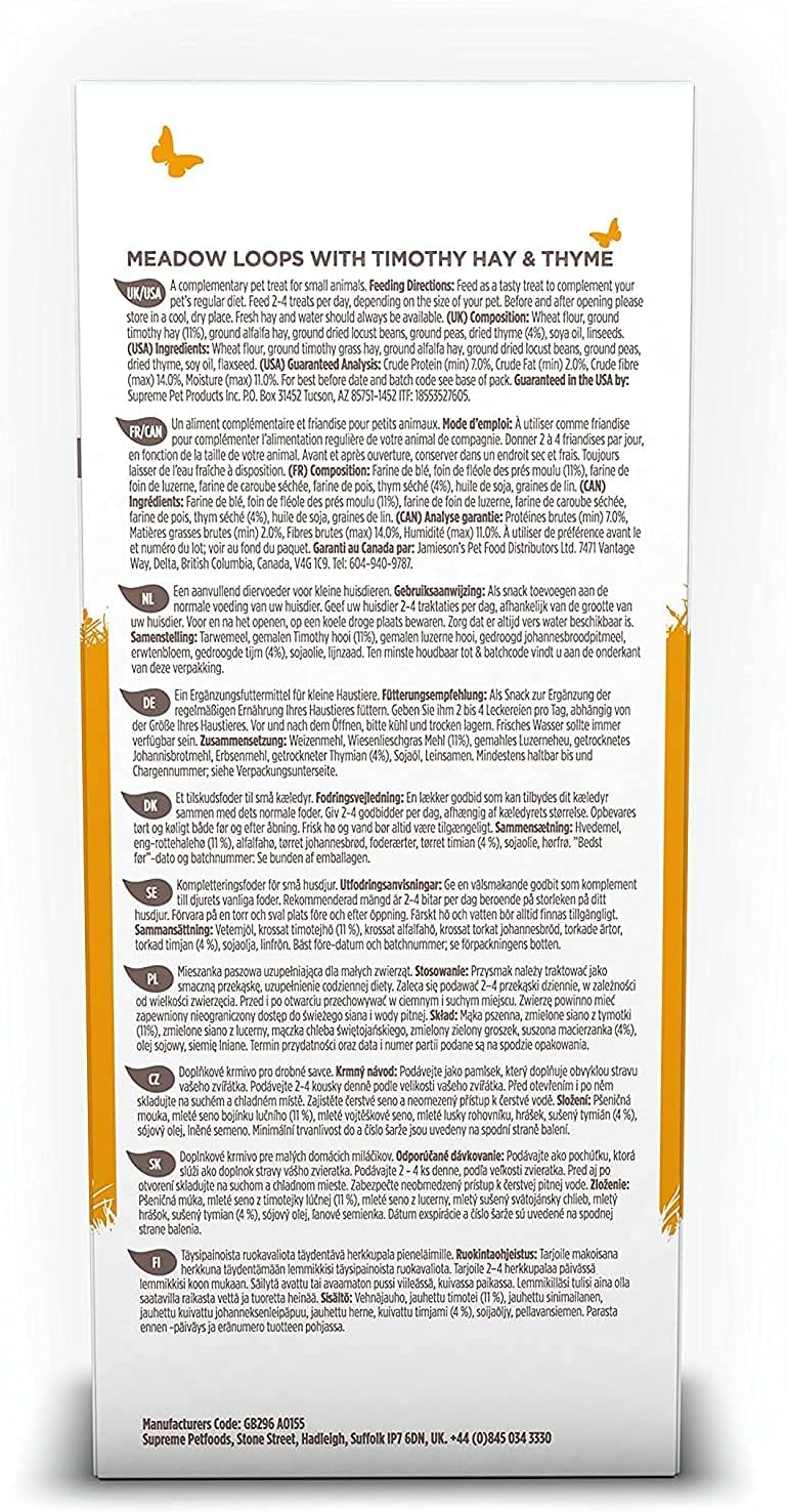Supreme Selective Naturals Meadow Loops for Rabbits with Timothy Hay & Thyme 80g (Pack of 4)