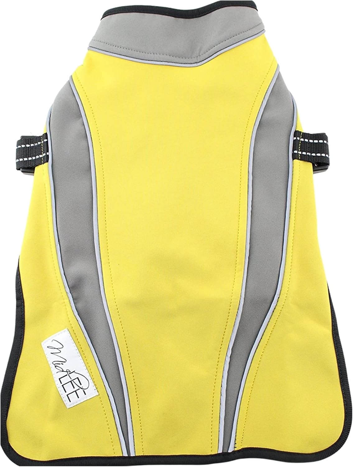Fleece interior and a softshell exterior with reflective ribbing for early morning and late night walks Covers chest and is a wind-proof, water-proof, all-weather jacket Buckle closure on the chest and zipper on the neck X-Small fits 13" back length, 7.5" neck, and 14" chest Small fits 15" back length, 10" neck, and 16.5" chest Medium fits 17" back length, 12" neck, and 19.5" chest Large fits 20.5" back length, 15.5" neck, and 24" chest X-Large fits 24.5" back length, 18.5" neck, and 28" chest XX-Large fits 28.5" back length, 22" neck, and 33" chest XXX-Large fits 31.5" back length, 25.5" neck, and 37.5" chest
