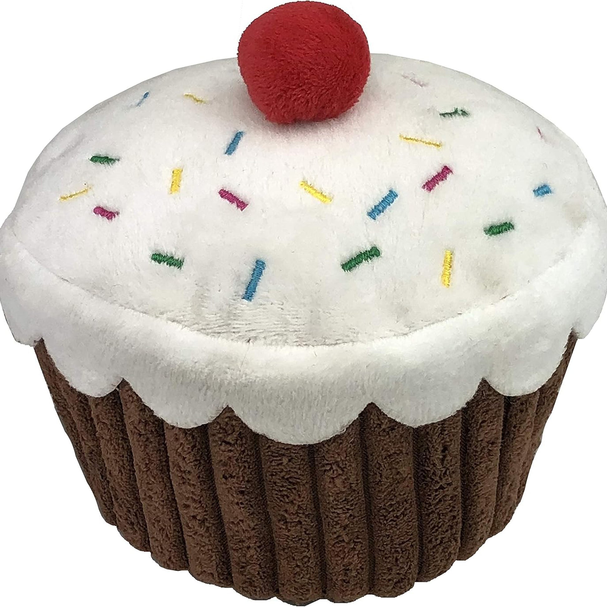Petlou Durable Plush Food Collection Pet Squeak Toy - Brown White(5" Cupcake)