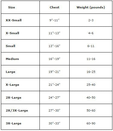 IMPORTANT: measure chest ONLY, just behind front legs, and always round down to maintain secure fit.