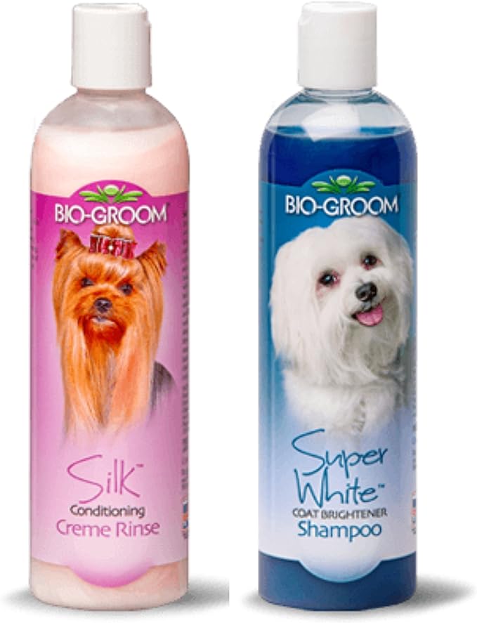 Bio-Groom Super White Coat Brightener Shampoo and Silk Conditioning Creme Rinse - Combo Pack 12 ounces Each