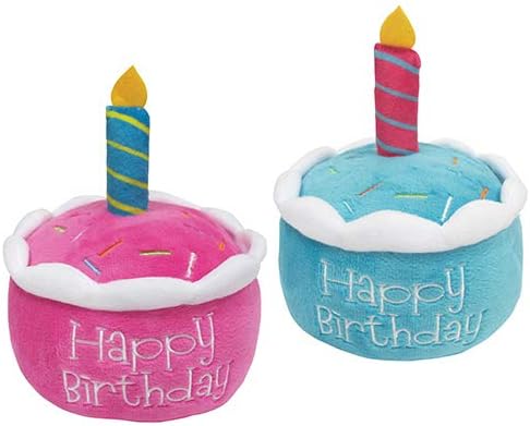 Birthday Cake Plush Toy with Hidden Squeaker (6") - ((Blue))