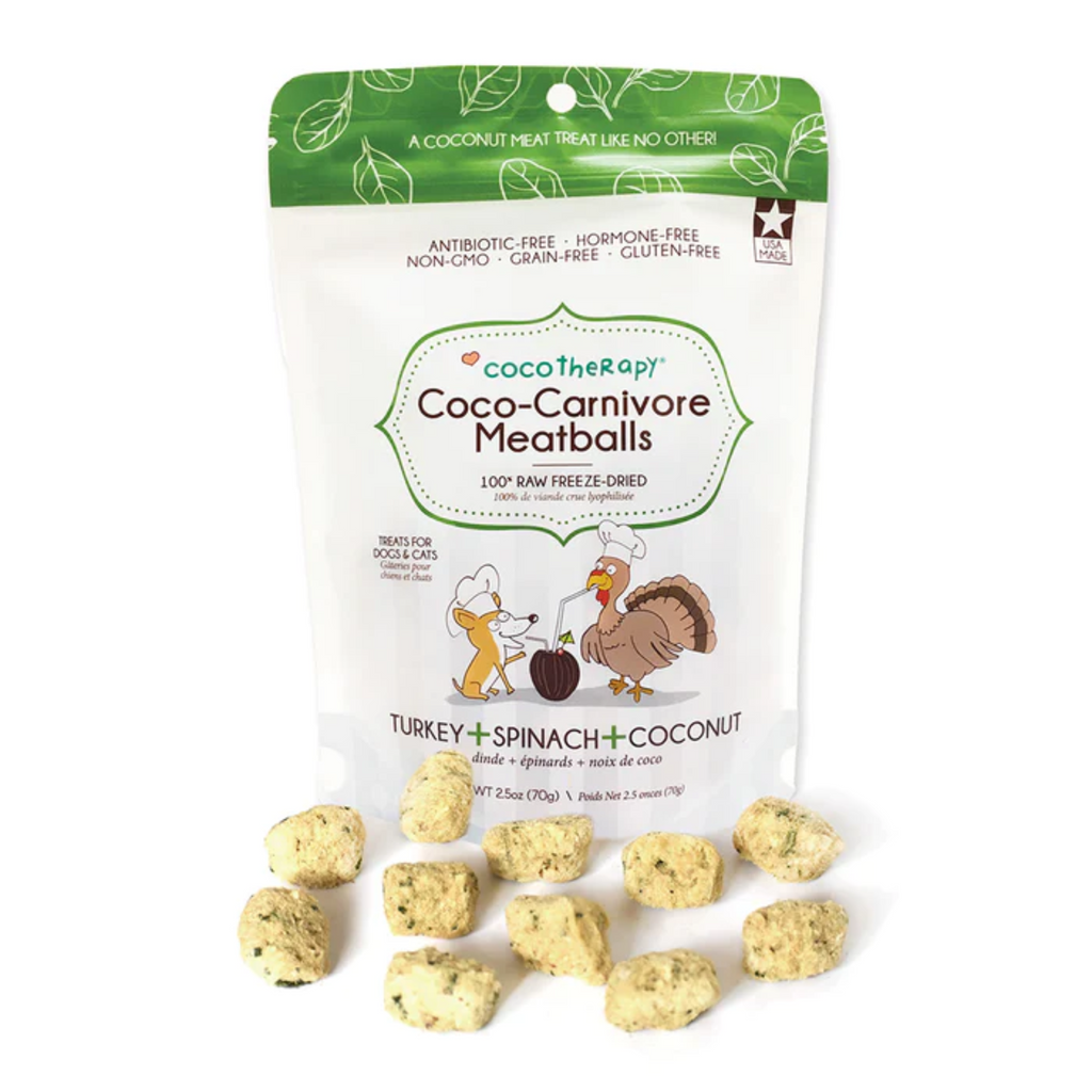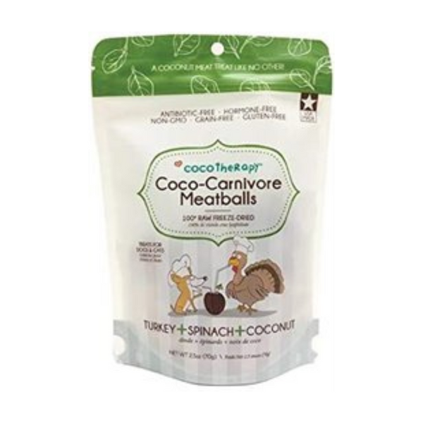 CocoTherapy Coco-Carnivore Meatballs Dog Treats, Turkey + Spinach + Coconut