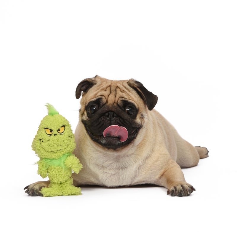 The Grinch may be grumpy, but your dog won't be when they play with the Dr. Seuss THE GRINCH plush dog toys. There's a little Grinch in all of us, and now your dog can play all day with his very own Grinch Santa Heart dog toy. Soft and plush, this Grinch stuffed animal comes with just the right amount of snuggle your pup needs. Use this stuffed dog toy as the perfect stocking stuffer and get ready for a super fun play time. Ideal for light to medium chewers, this dog toy will bring on a world of cuteness and fun. It features a light squeak when squeezed to keep your pup occupied and entertained without bringing you irritation. This is a great Christmas stocking stuffer for dogs for your dog Christmas stocking. Make it a holiday gift or let it be a fun dog chew toy for everyday play!