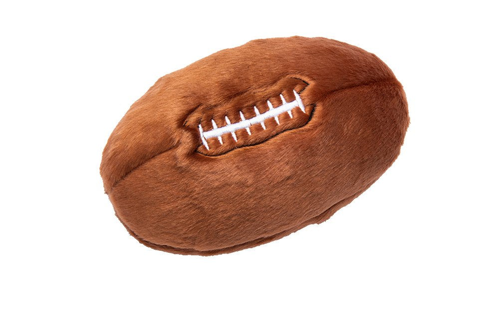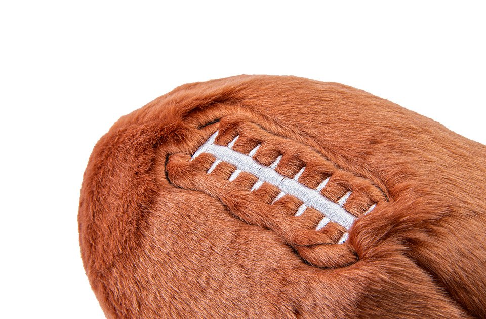 Touchdown! Our classic plush football brings yards of fun anywhere your pup likes to play! It’s machine washable, too, so you can play indoors or out! Another custom design by Fluff & Tuff, this plush football toy is sure to make the perfect toy for your pet. Made with our unique ultra-plush outer fabric, and lined with our thick, durable Tuffweb™ mesh liner, our toys are designed to last. All of our toy seams are concealed, generously folded, and double-stitched. Each toy is contains a squeaker and is stuffed with 100% non-toxic poly-fill to get it the perfect shape to play with for your furry friend. Instead of plastic eyes, with might come off and be swallowed, or have hard edges that might hurt your pup, we embroider the lacing so you get that same effectwithout the risk of injury. While we don't claim our toys are indestructible, since no plush toy really can be, we do combine superior quality materials with proven construction methods to create the most durable plush toys on the market today.