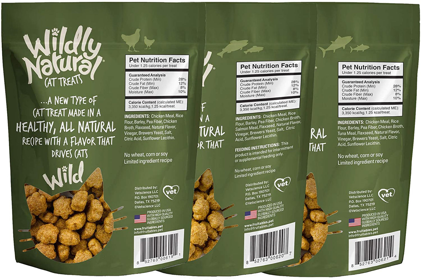 Fruitables Wildly Natural Cats Treat Variety Pack 3 (1 Bag of Each: Chicken, Tuna and Salmon)
