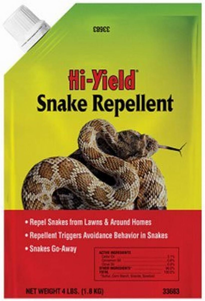 VPG Hi-Yield, 4 LB, Snake Repellent, Repel Snakes From Lawns & Around Homes, Triggers Avoidance Behavior In Snakes, Provides Powerful Scent/Taste Repellent, Triggers Natural Reaction To Escape & Avoid, Does Not Harm Snakes, It Drives Them Away, Naturally. This product can be used easily. This product is manufactured in China.