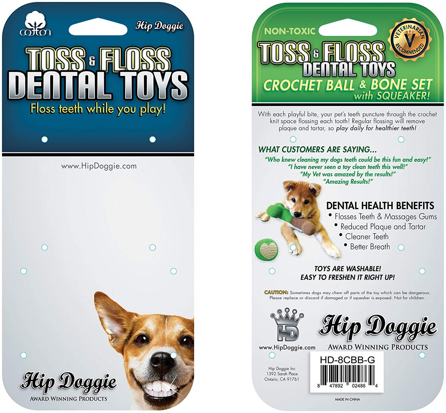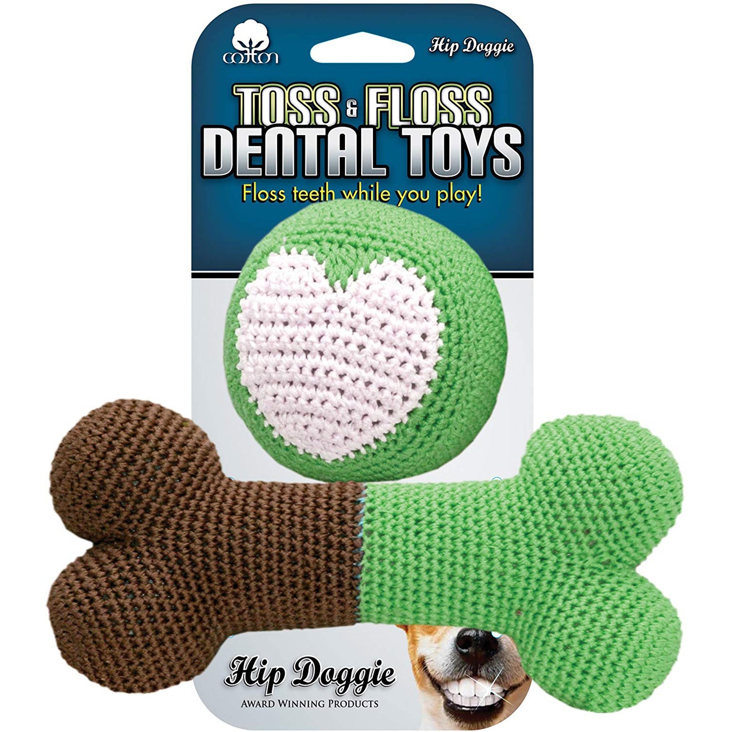 Hip Doggie Dental Dog Toy - Plush Squeaker - pet Teeth Cleaning Tool - chew Crochet to Floss