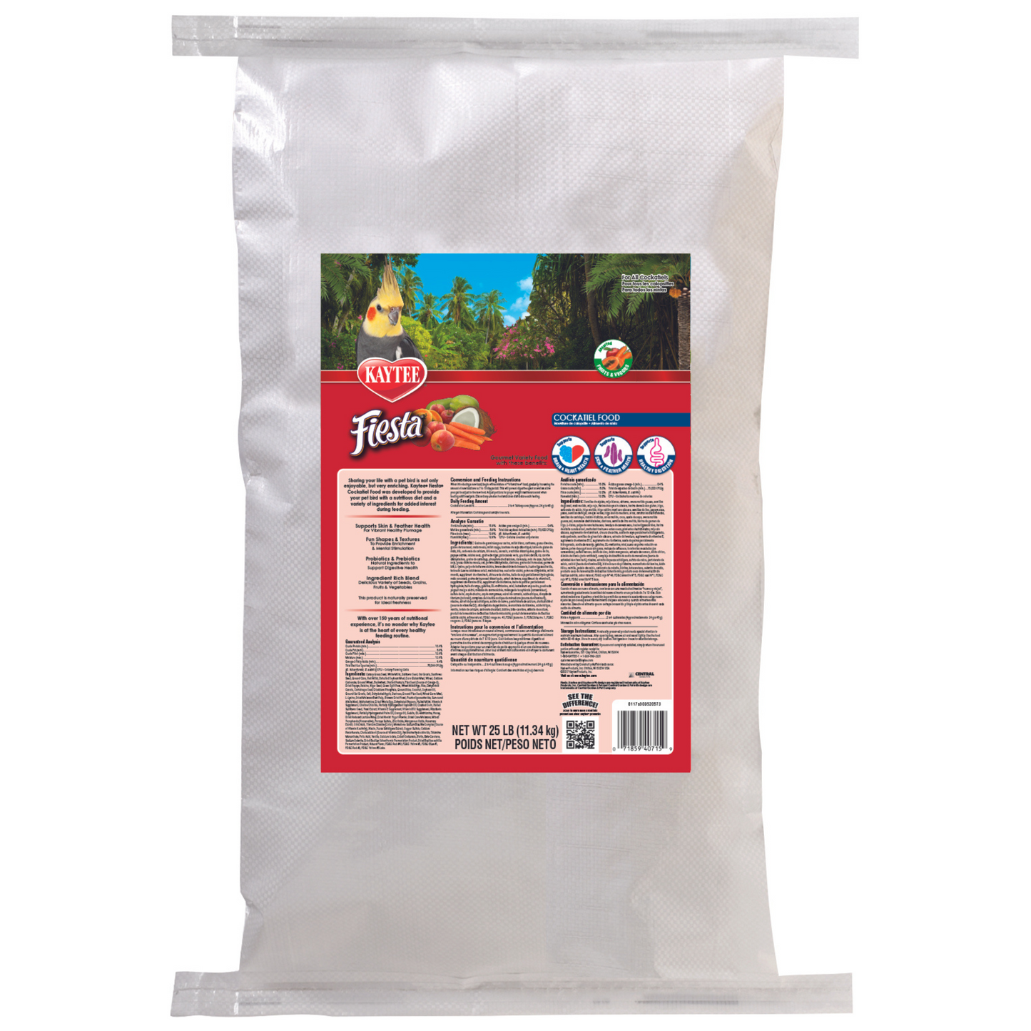 Kaytee Fiesta Macaw Gourmet Variety Diet is the leading fortified daily food for pet birds. An exciting mixture of quality fruits, nuts, vegetables, specialty seeds and grains create a unique formula to provide all essential nutrients.