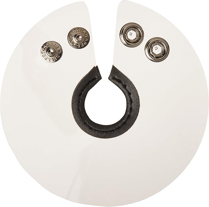 Made of tough, pliable, lightweight Lexan with "tight-snap" fasteners. The neck opening, which comes in eight snap-adjustable sizes, is padded with soft vinyl foam. Specially designed for birds Helps overcome feather picking and the itch-bite-scratch cycle Combines long-lived toughness, softness, and lightweight Size: 6" Dia., Neck Dia.: 0.6"-0.9", Neck Circ.: 2.0"-2.7" Weight: 9 gram