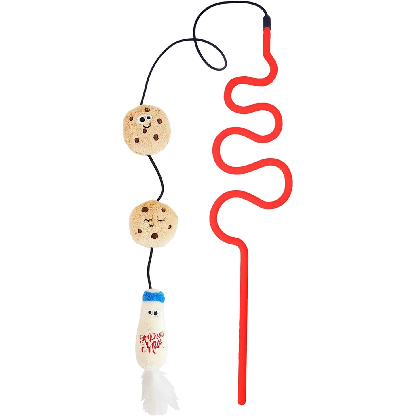 This unique wand features a custom silly straw handle that has the perfect amount of flex for interactive play. The Mad Cat Cookies and Milk Chaser Wand features three adorable soft plush toys for triple the fun and a super bouncy elastic string for maximum movement. This toy is great for active playtime, chasing, jumping, and pouncing.