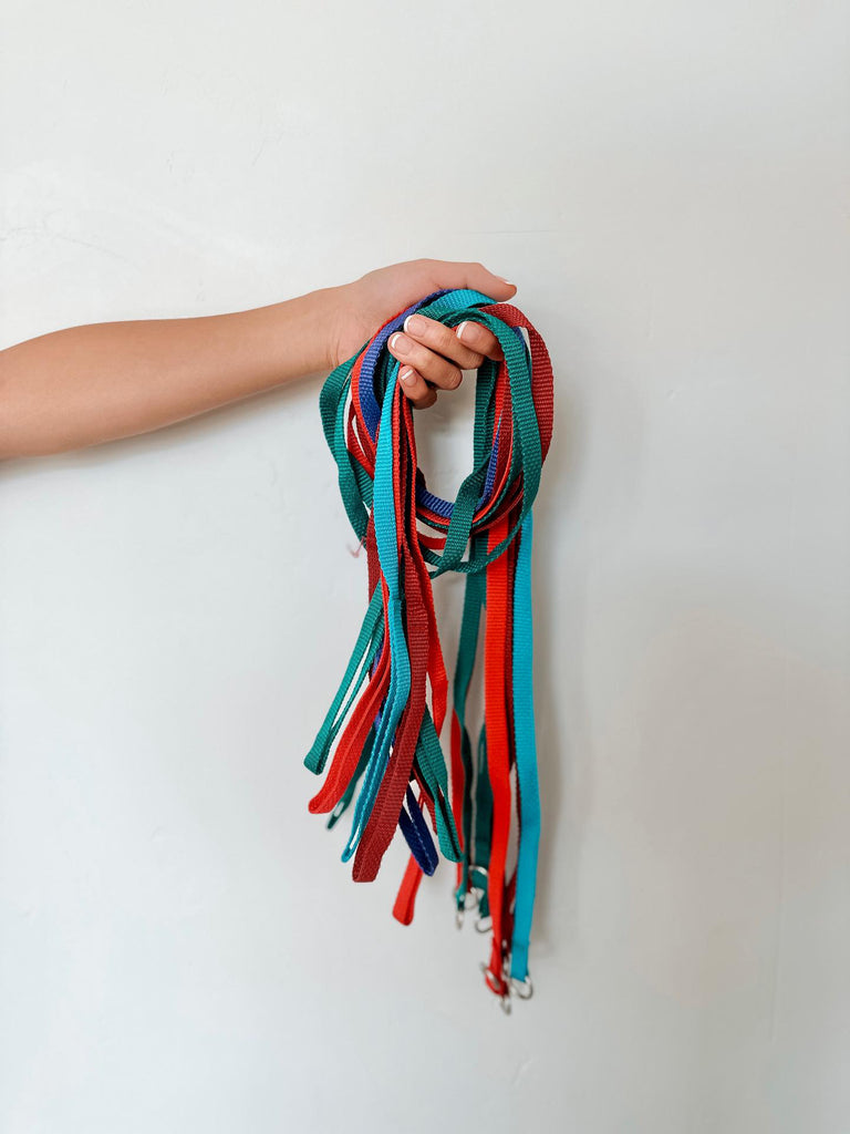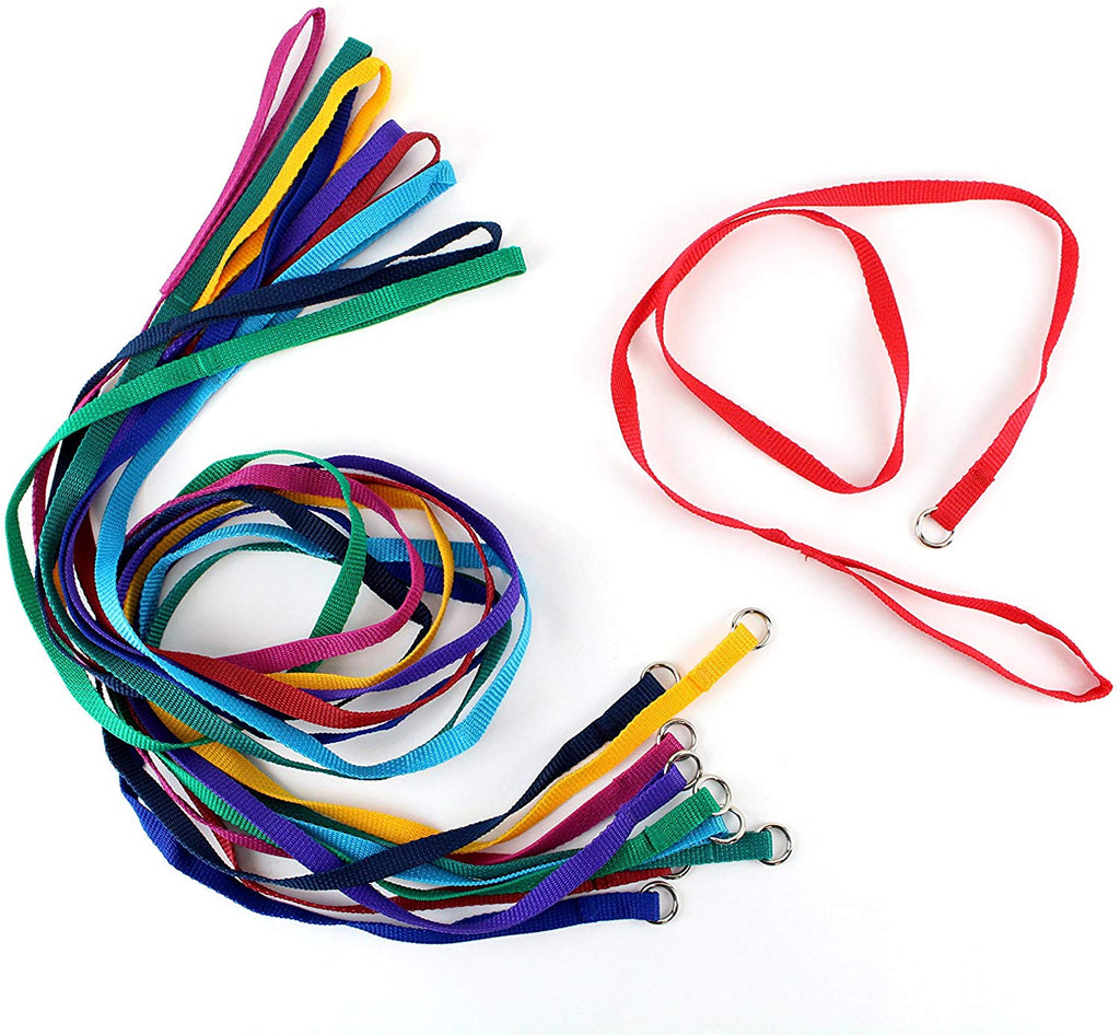4 feet long x 1/2 inch wide. Pack of 10 various colors. Unique combination of leash and collar. The handle end of the leash slips through the o- ring to from a collar. Makes transporting dogs safe. Great for veterinarians, groomers, shelters, dog walkers, boarding kennels, and more. Quickly and easily adjust to any sized dog neck.