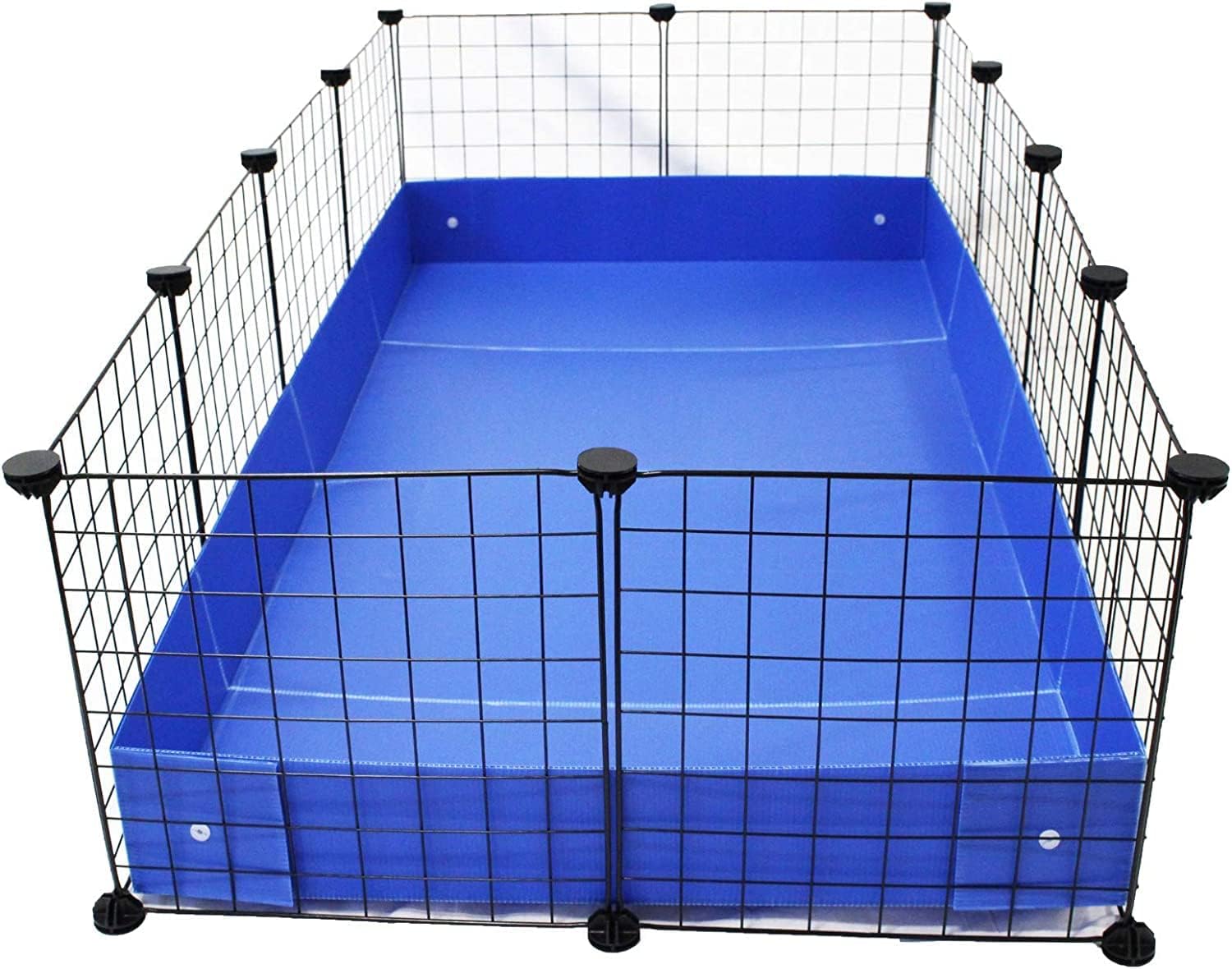This package includes both a liner for your pet as well as cage panels which fit snuggly against the liner surrounding it. Each panel measures 13.5" x 13.5." Meaning the liner measures 3 x 2 panels (40.5" x 27"). Cages and enclosures can be confining for your pet, so create a large play space in minutes, with plenty of room to roam, drink, eat, and play! Each panel locks solidly in place and creates a safe space for your pet. Parents report there are endless possibilities with these liner and panel combinations. Panels and liners are also sold seperately if you'd like to customize your own layout!