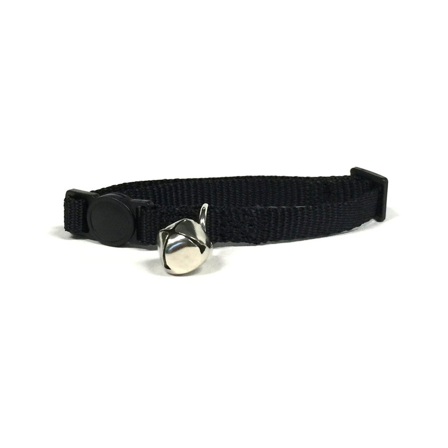 A spooky Halloween Cat Collar Set from Midlee! Includes 2 cat collars. One collar is bright orange with tiny spiders and the other is black like the spooky nights ahead of us! Each collar is a nylon ribbon so its durable for outside kitties. These collars feature plastic safety buckles and will not work as a restraint or tie-out. Each collar has a little bell for added cuteness. One size fits most cats. Collar adjusts from 8" to 11" (20.32cm to 27.94cm) and is 1.5" (3.81cm) wide.