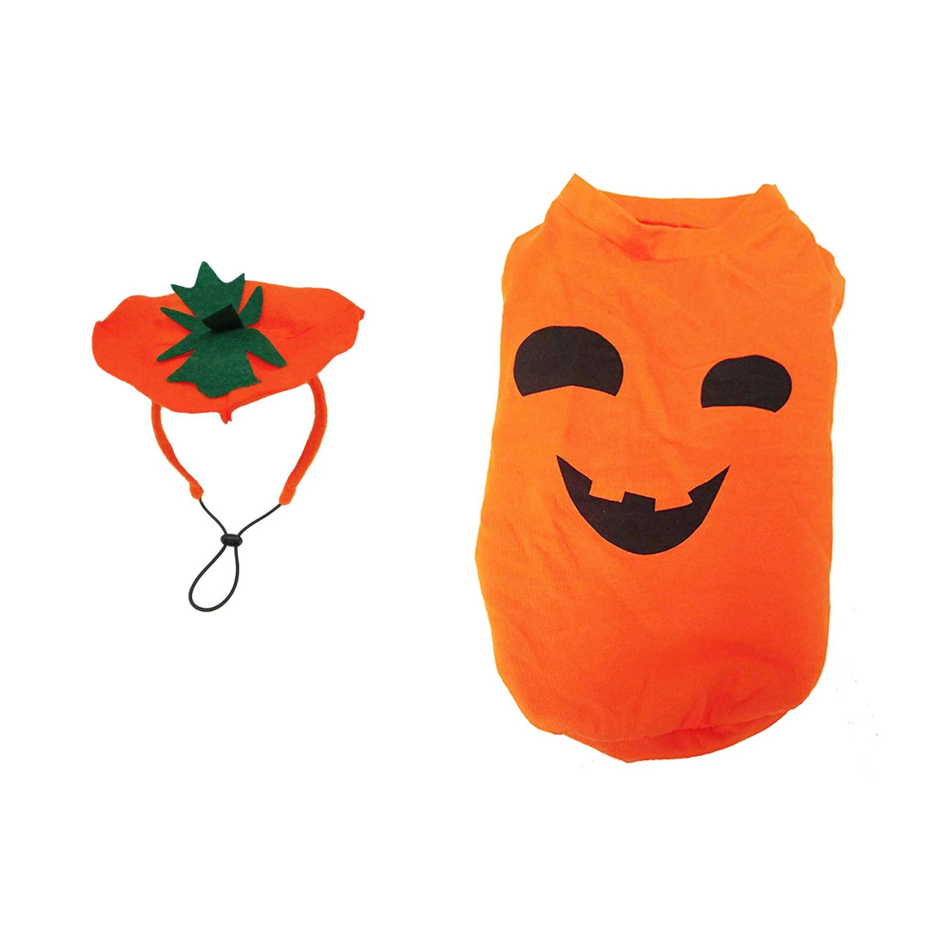 2 Piece Set - Your dog can be the cutest pumpkin in the patch with this pumpkin dog costume. This set comes with a pullover style shirt and headband that stretches from 4" to 8" wide with an elastic strap to keep it on your dogs head. XX-Large fits a 22” back, 26” chest, and 21” neck. 3X-Large fits a 26” back, 31” chest, and 23” neck.