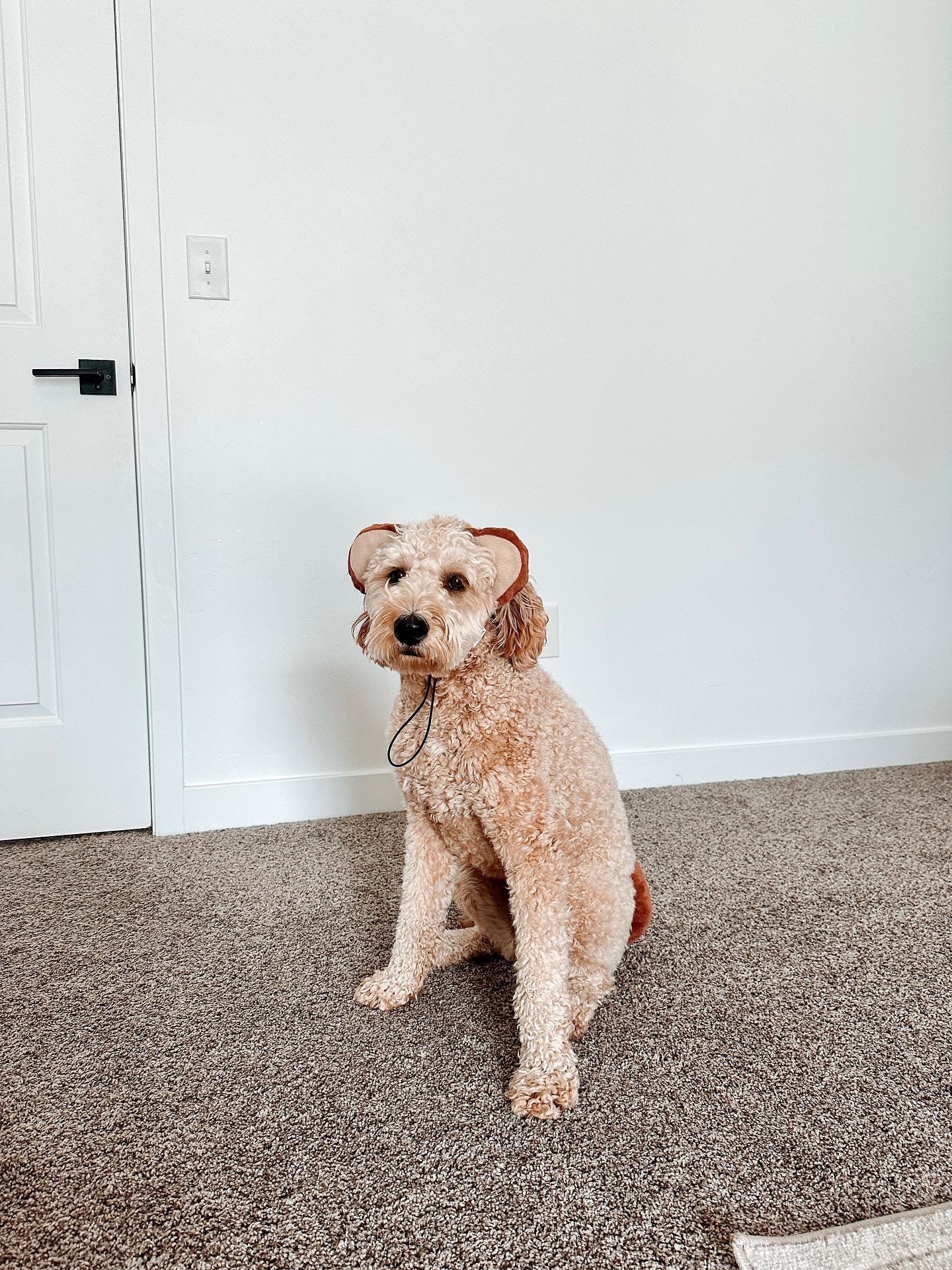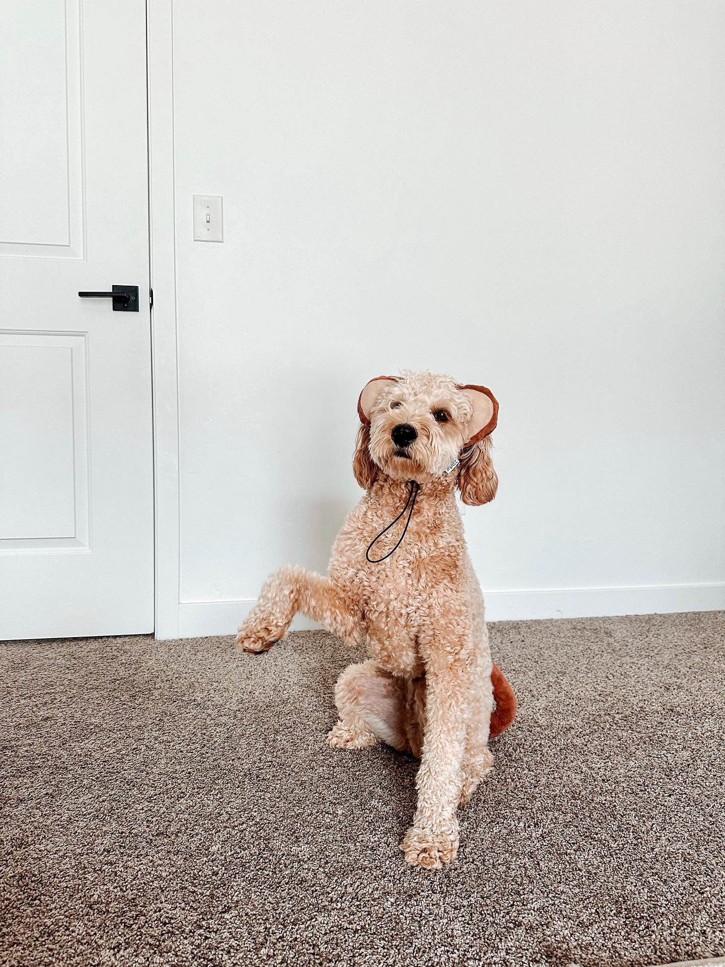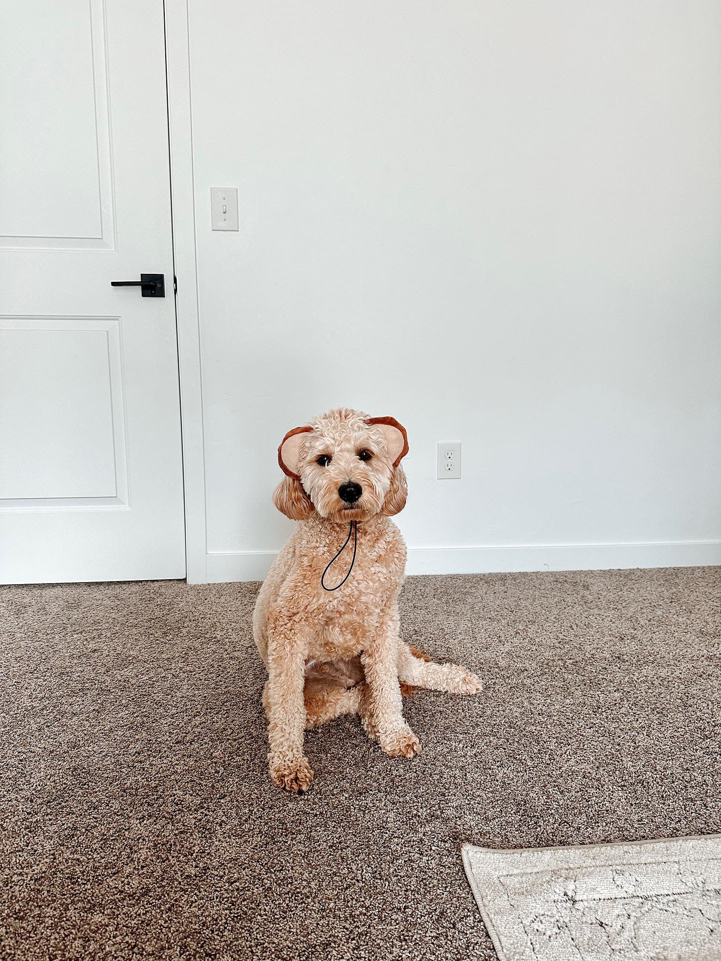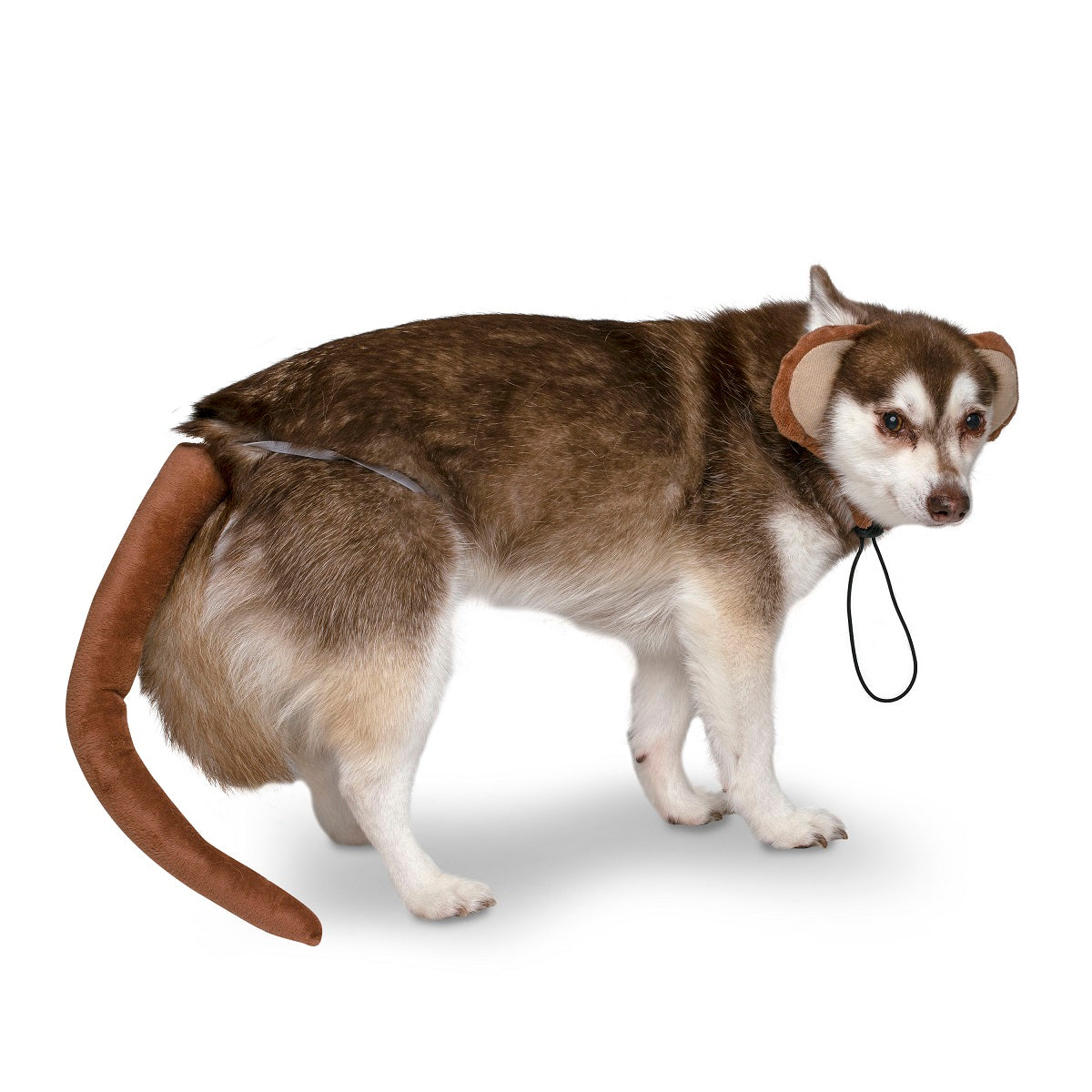 Brown monkey dog Halloween costume with headband and tail. Best for medium to large-sized dogs. Dressing up as jungle characters this Halloween? This monkey will be the perfect addition to your clan! Includes a monkey ears headband stretching from 4" to 8" featuring an adjustable chin strap. Also includes a plush monkey tail measuring 14" long (tie a knot in the elastic to best fit around your dog's waist). We know your dog already acts wild like a monkey, dress them up in a costume to match!