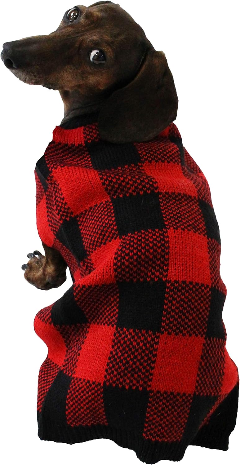 Midlee Red/Black Buffalo Check Dog Sweater Christmas Holiday Outfit (4XL)