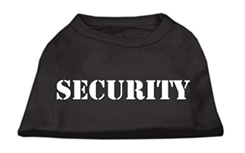 Neck: 16" Length: 18" Chest: 22". For dogs 20-25lbs. Whether your dog is tough or pretends to be tough, this security dog shirt is what they need. Classic black dog shirt with white security lettering.