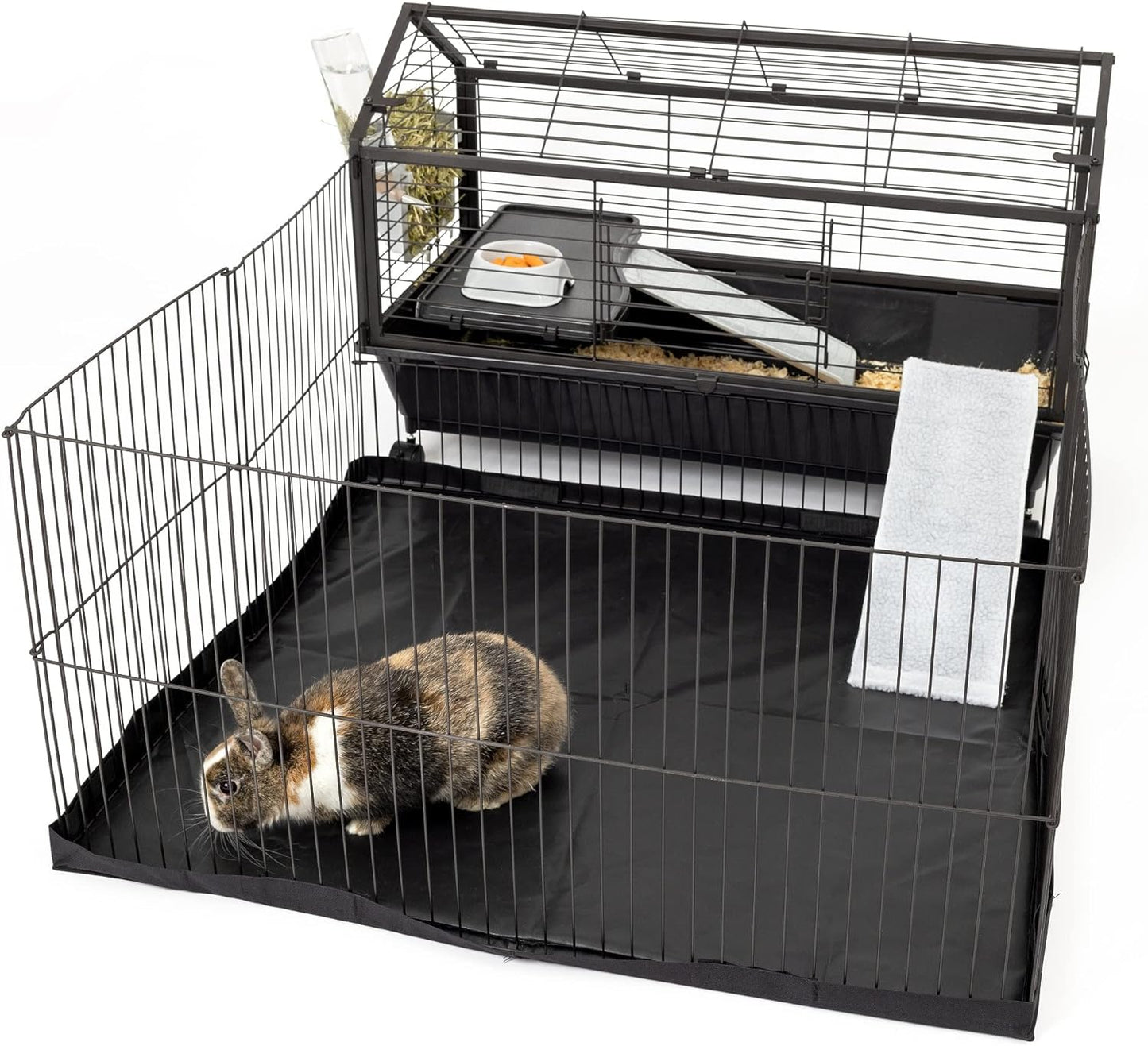 The Midlee Small Animal House and Habitat is a comprehensive and convenient solution for providing a comfortable living space for your small pets. This multi-functional setup includes a house and habitat with a canvas bottom, a water bottle feeder, and a playpen area for your furry friends to enjoy.