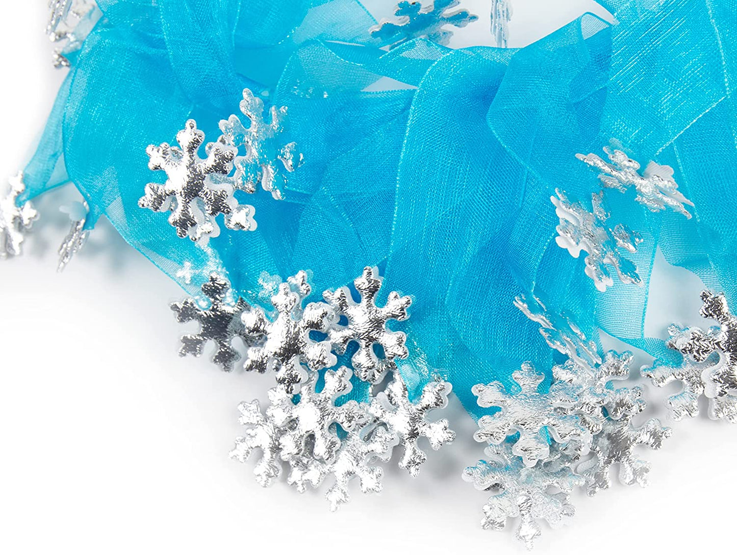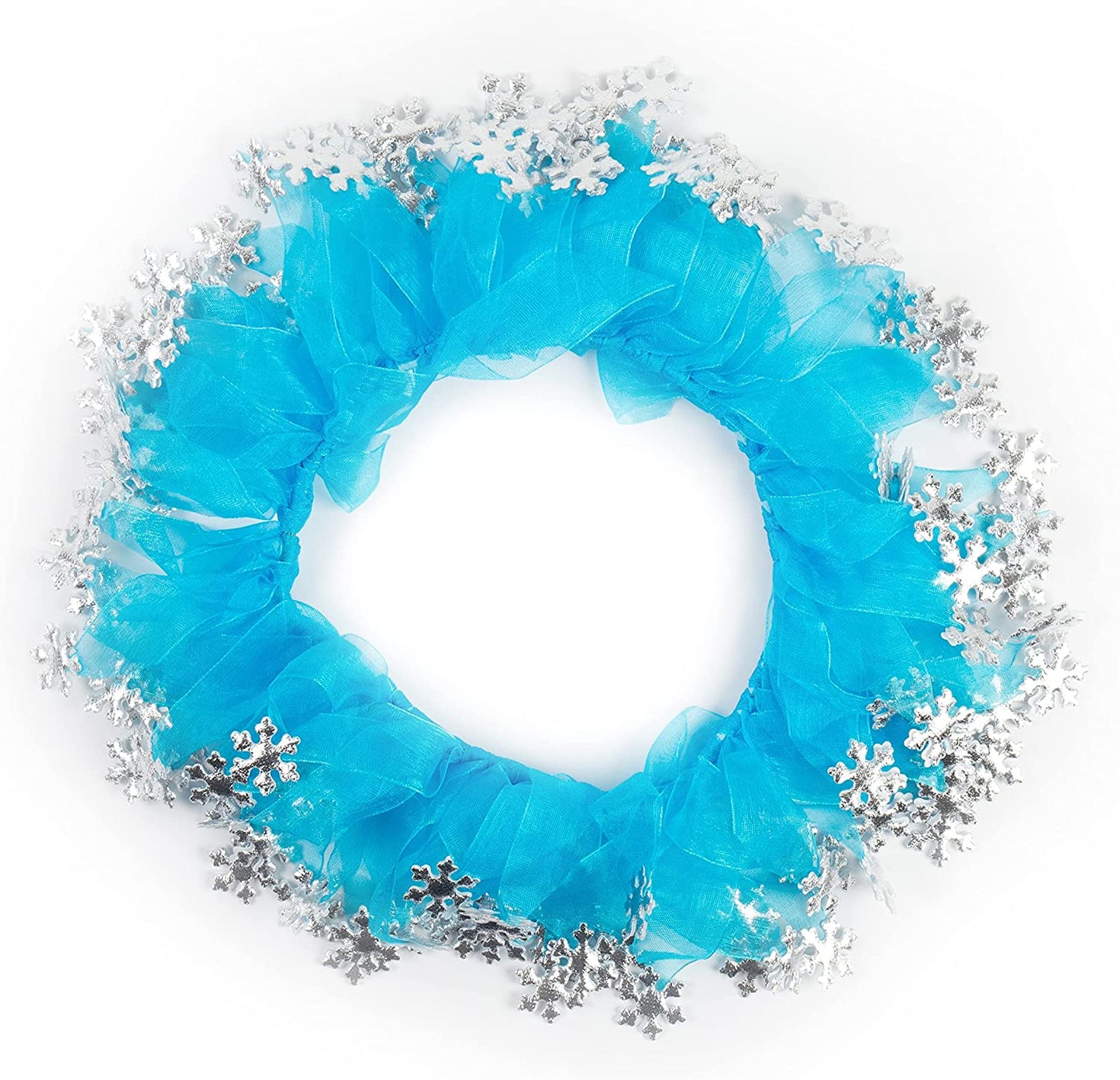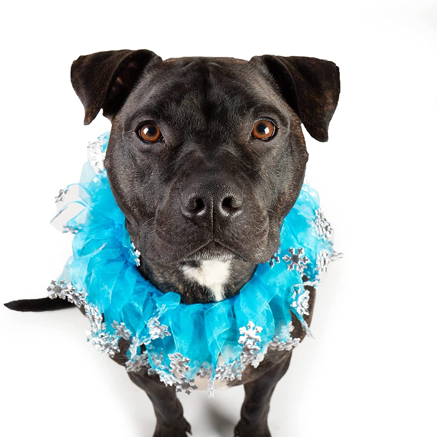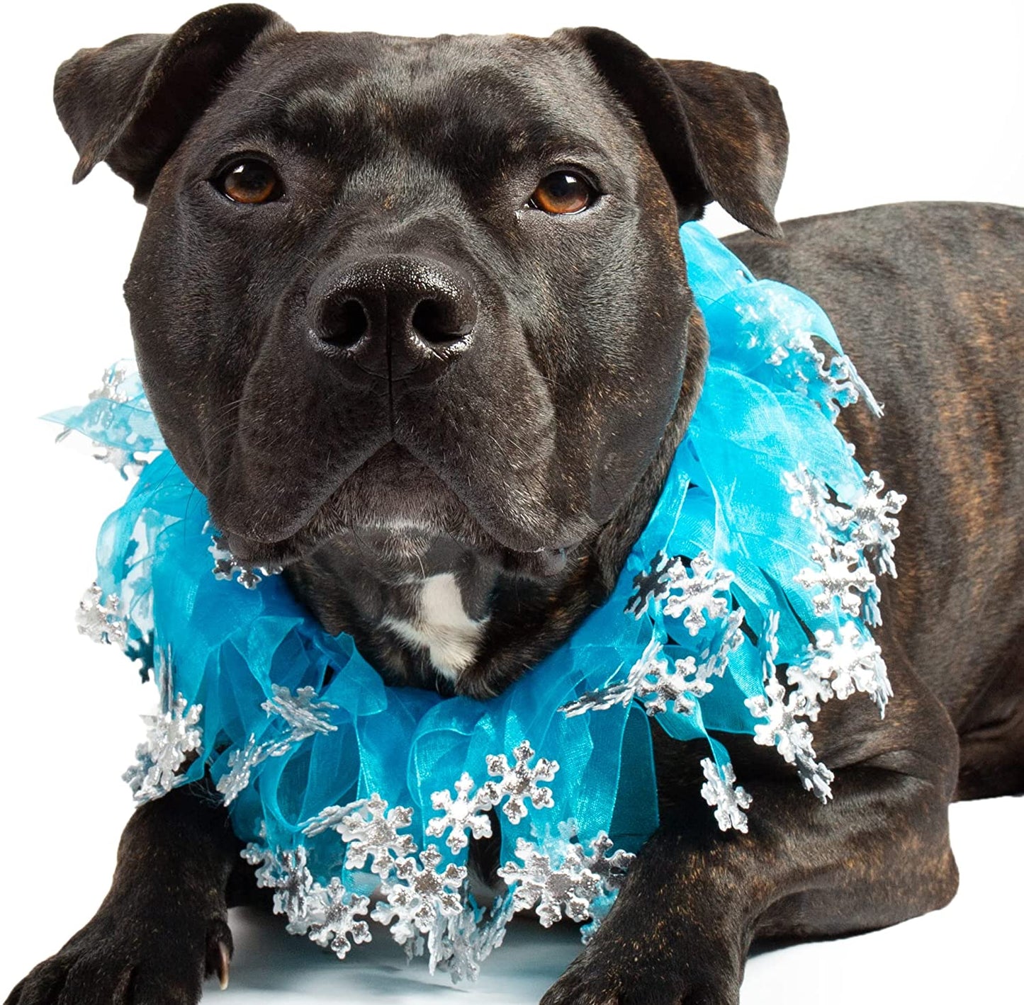 22" necks. Made from elastic so has some stretch. If you're looking for the perfect winter accessory for your dog, this is it! This dog collar will have your pet ready for any Winter themed party. Features blue tulle and silver sparkle snowflakes. Can not be used as a restraint. For decorative use only.