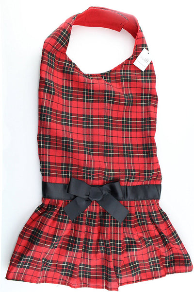 Tartan Plaid Dress for Big Dogs by Midlee - Classic red tartan plaid design with black and white stripes, sewn-in ribbon belt with bow, pleated skirt, and Velcro at Halter-neck and chest for security. Great dress for the holidays!