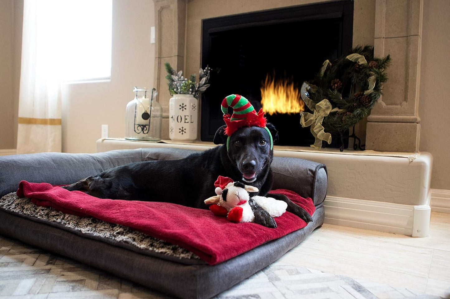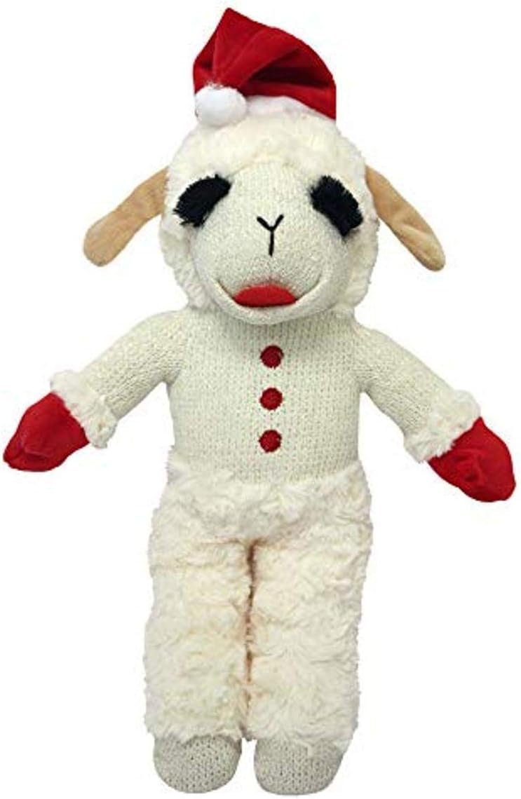 Small: 8 inch Standing Lamb Chop w/ Santa Hat. Dogs will love celebrating the holiday season with Shari Lewis' classic and beloved lamb! Lamb Chop, complete with a Santa hat, is a soft, cuddly, plush toy that squeaks. It is the perfect size for your pet's stocking and such a great gift! Your pet can gnaw, play, and cuddle with this adorable soft lamb toy!