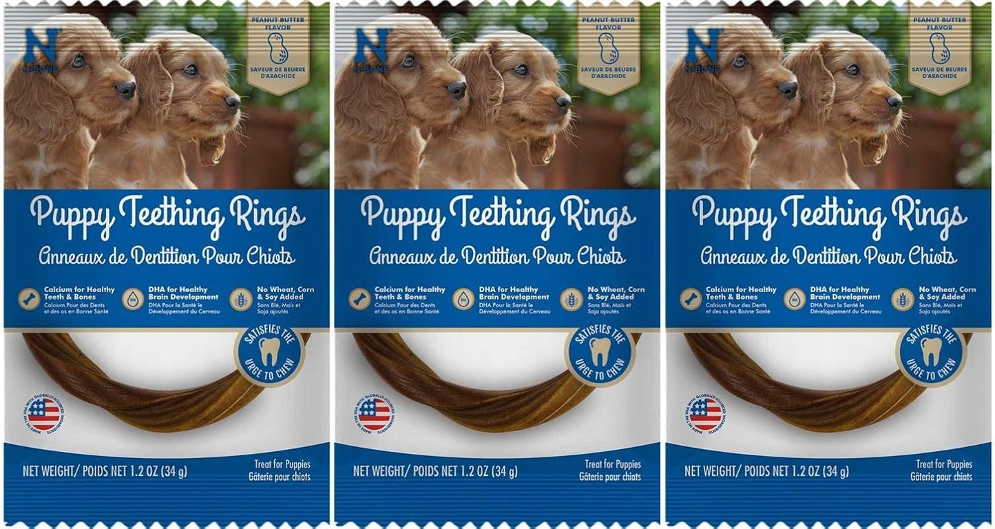 All puppies go through the process of growing new teeth; and while teething, puppies have a strong urge to chew. Deter destructive chewing with N-Bone Puppy Teething Rings. Its unique shape and pliable texture make it an ideal teething aid to alleviate discomfort by massaging gums while your puppy enjoys this delicious treat.