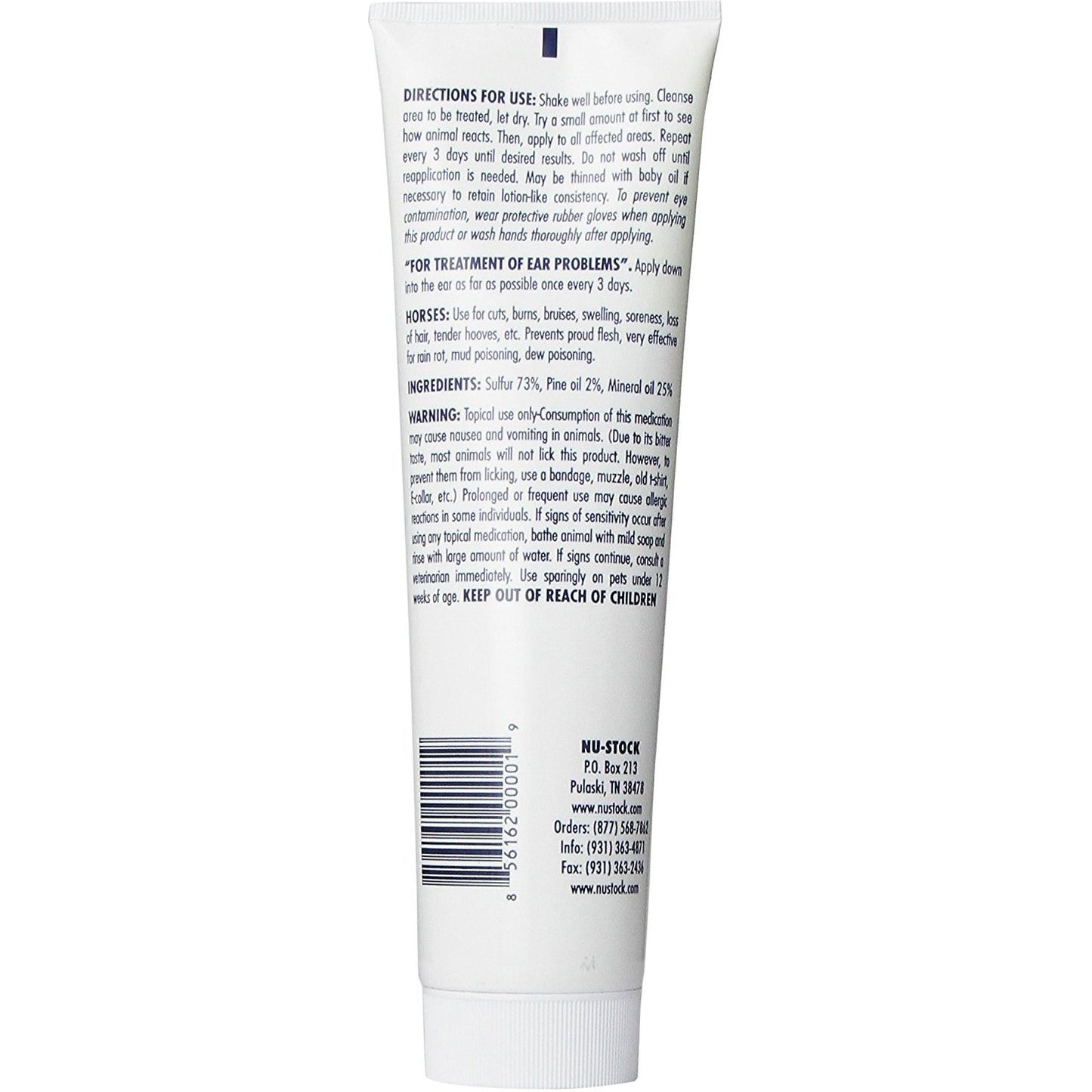 Nu-Stock is an effective treatment that provides fast relief for most animal skin, hair, and fur conditions. It contains ingredients such as special mixed oils, sulphur, and natural resins... No Steroids. Nu-Stock is non-toxic and is safe on all animals - even cats.