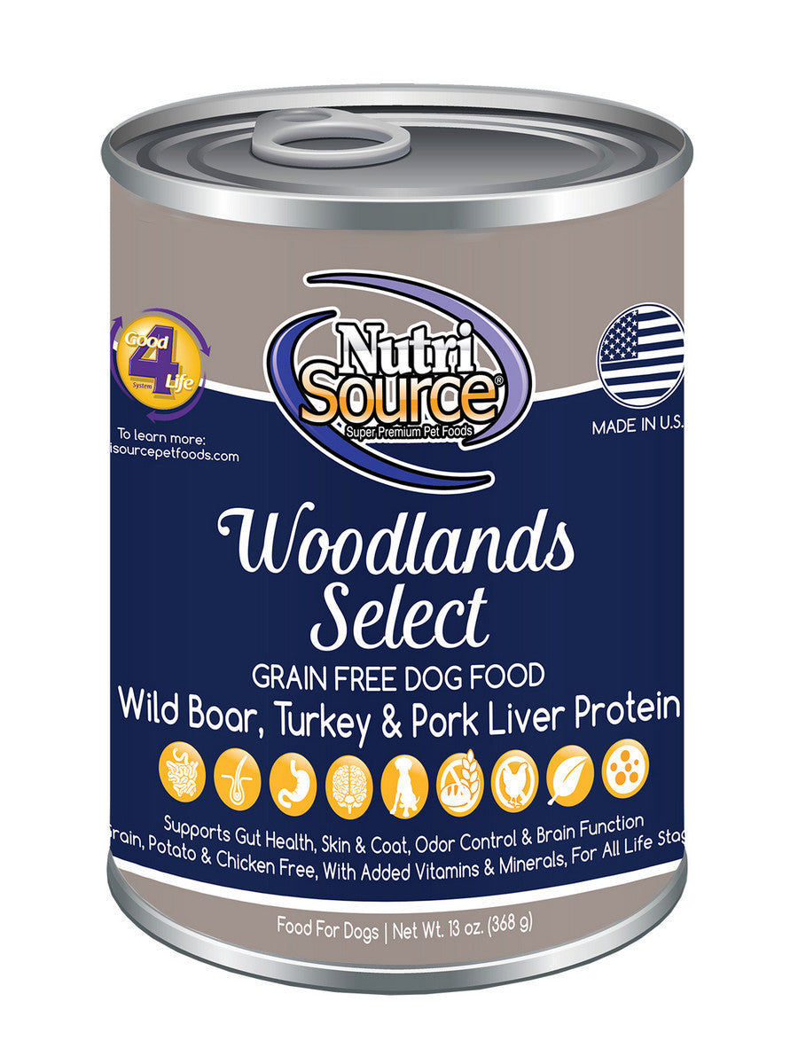 NutriSource Grain Free Woodlands Select Wild Boar, Turkey & Pork Liver Canned Dog Food - 13 oz- Pack of 12