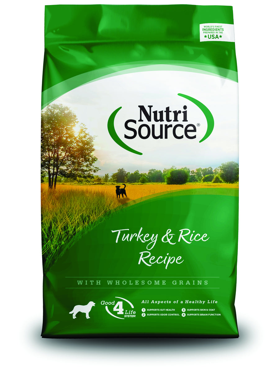 NutriSource® Turkey & Rice Recipe Dog Food is a scientifically formulated, easy-to-digest food. Real turkey is the number one ingredient. Turkey has rich, wholesome taste dogs love and is a source of high-quality protein that helps maintain muscle mass and strength. Our blend of turkey, rice, and carefully selected ingredients helps balance essential nutrients necessary for the health and well-being of your furry friend. Feed with confidence knowing that you’re part of a family that loves your pets just as much as you do. Health begins here.
