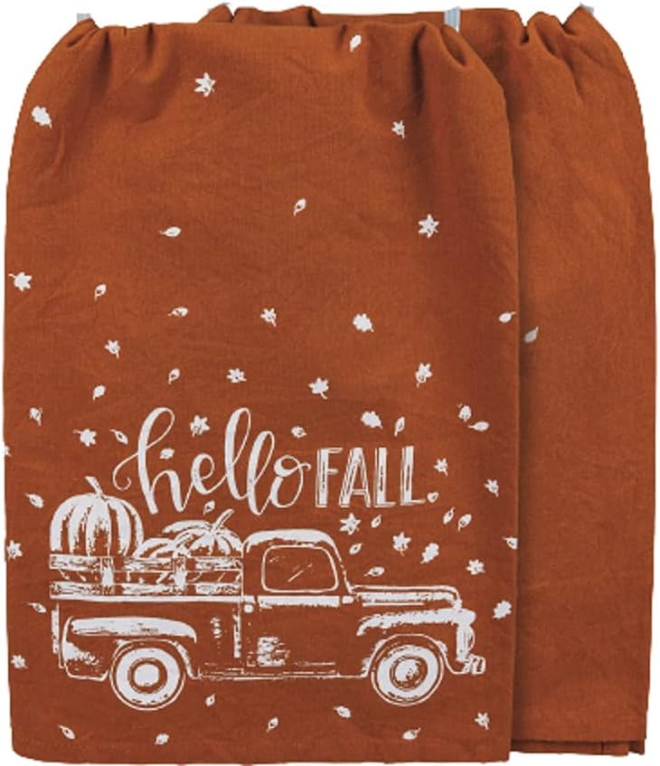 Hello Fall Pickup Truck and Pumpkins Printed Kitchen Dish Towel Cotton. Machine-washable.