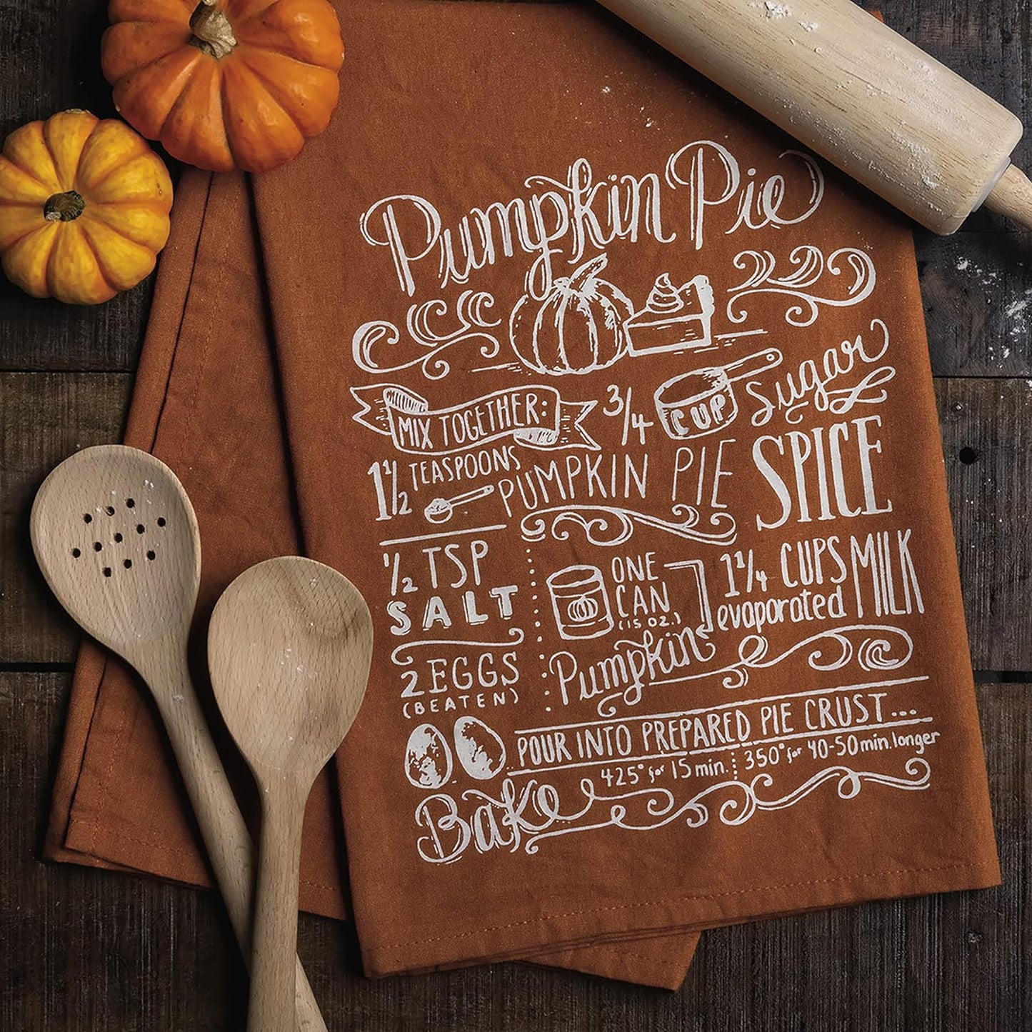 This orange cotton kitchen towel features a charming hand-lettered pumpkin pie recipe along with complementary seasonal designs. Crafted from soft, durable cotton, it is both functional and decorative, perfect for use in any kitchen. Machine-washable for easy care, this festive towel adds a touch of holiday warmth and style while being practical for everyday cooking and baking.