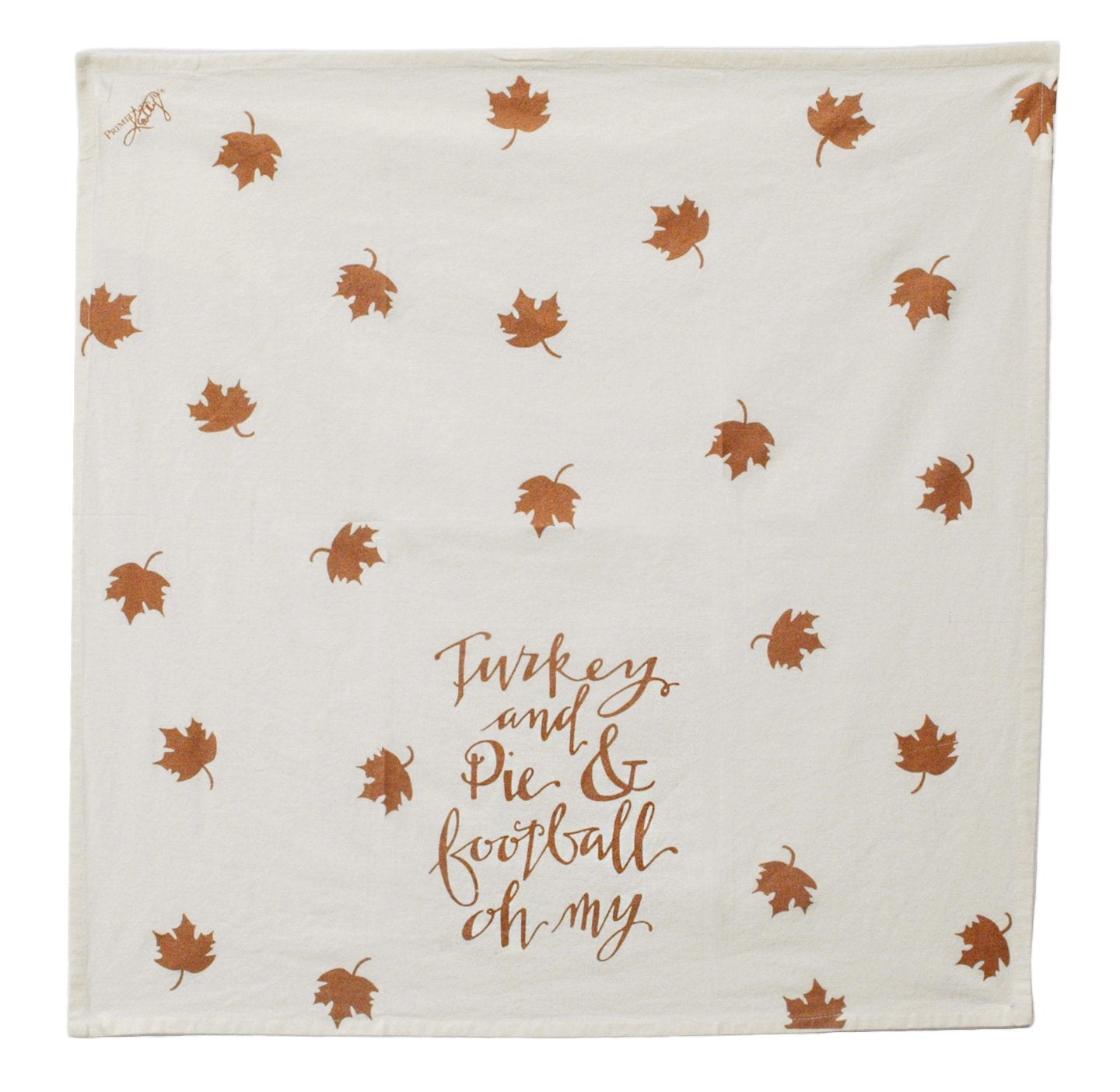 Features the phrase "Turkey and Pie & Football Oh My" in gold colored letters