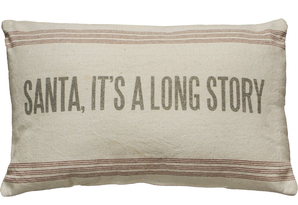 Primitives by Kathy Vintage Flour Sack Style Santa It's A Long Story Holiday Christmas Throw Pillow