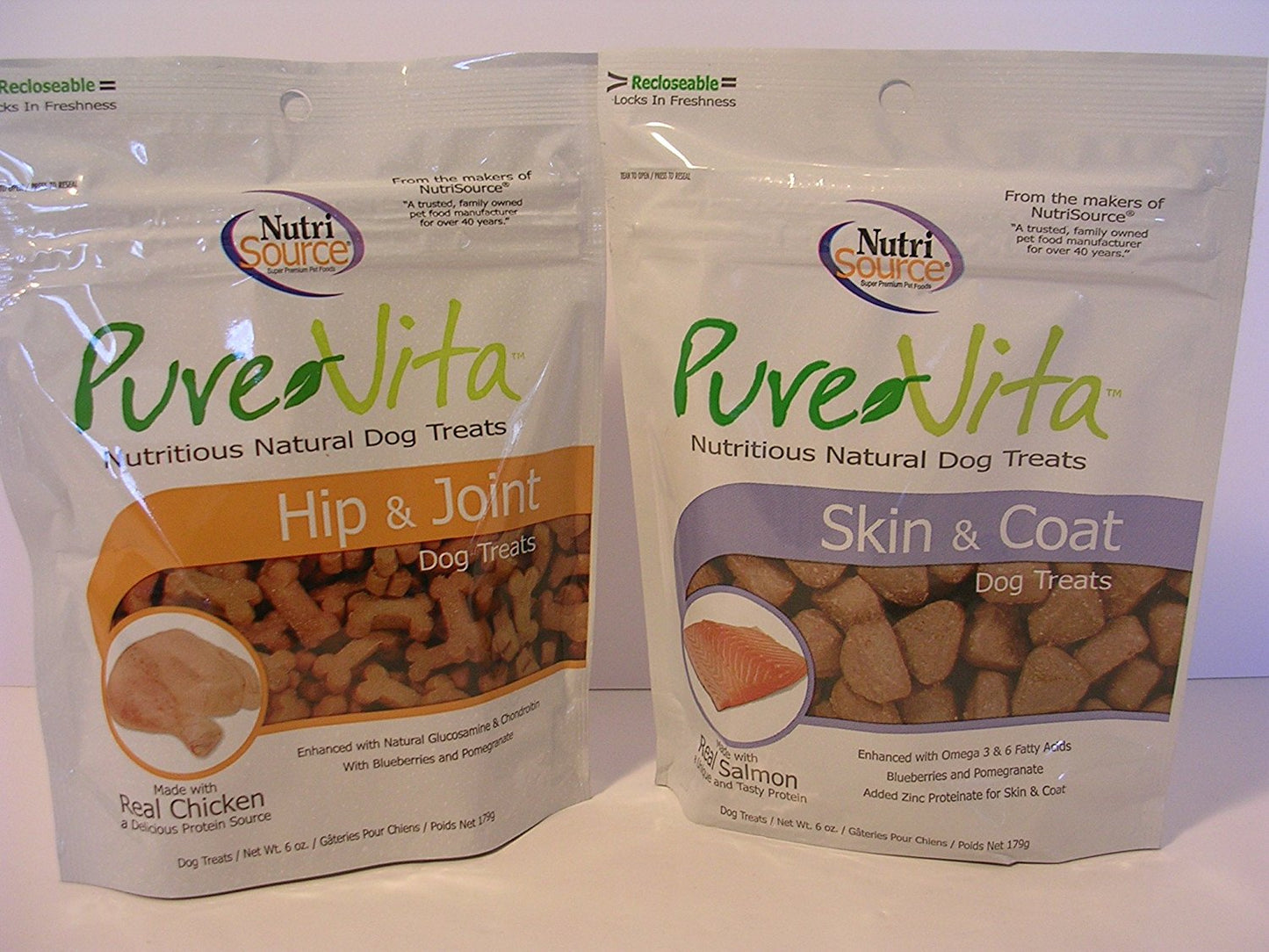 Pure Vita Dog Treats Bundle of 2 - 6 oz bags - Salmon Skin & Coat and Chicken Hip & Joint