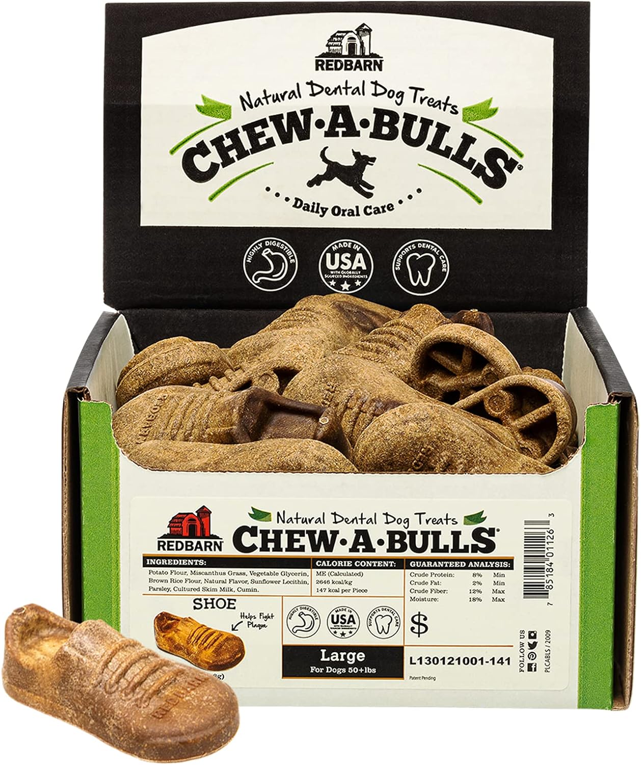 Redbarn Pet Products Chew-A-Bulls Shoe Dental Dog Treats Large