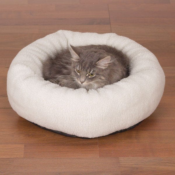 The Slumber Pet Cozy Kitty Bed provides cats with a soft and cozy place to rest. In cozy Berber or soft cheetah print plush, this cat bed is a must-have for cat lovers. Each bed measures 18 inches in diameter, giving your cat plenty of room to stretch or curl up in this super cozy bed. The bed features a non-skid nylon bottom to prevent the bed from sliding around. The bed is made from machine-washable materials to ensure that your cat always has a clean bed.